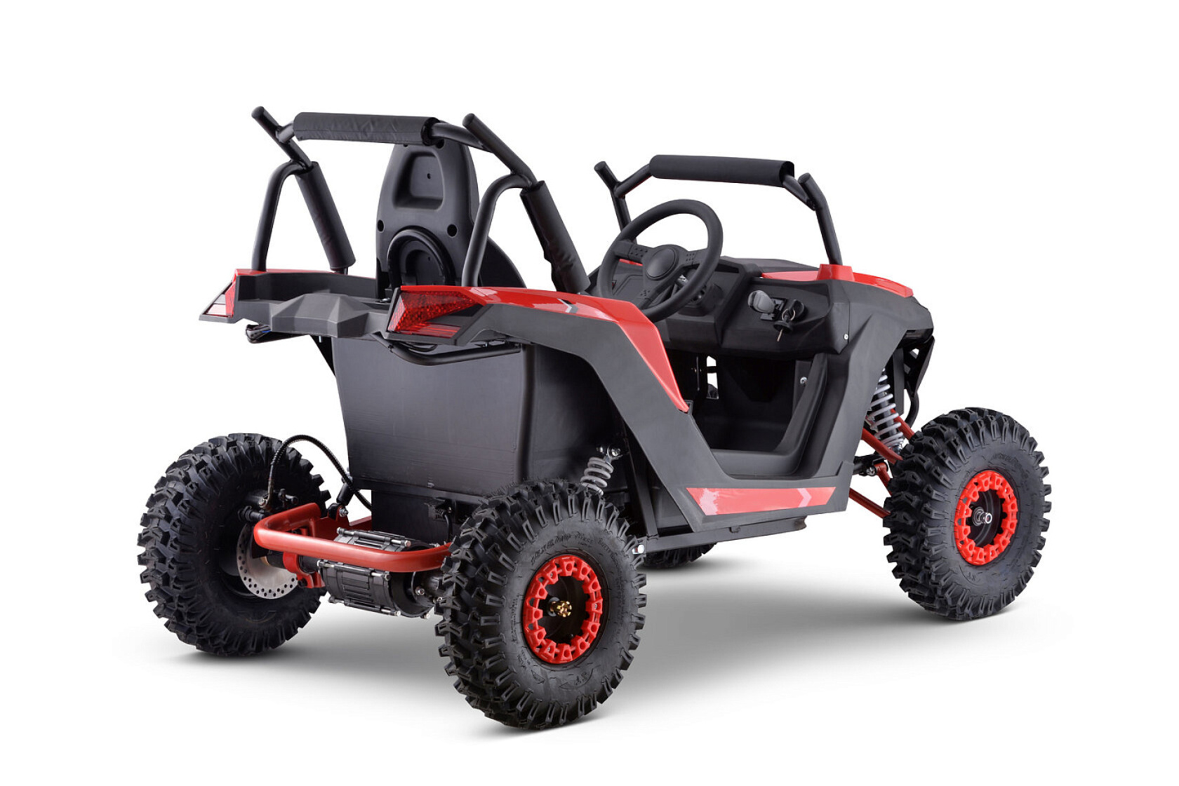 SCANMOTO COBRA - это детский спортивный электробагги. Металлическая рама, большой ход регулируемой подвески, четыре скорости - три для движения вперед и одна для движения назад, глубокий внедорожный протектор покрышек, регулировка руля на себя - от себя, ремни безопасности позволяют ребёнку от 7 лет почувствовать себя настоящим пилотом спортивного болида. Багги COBRA - это первая ступень освоения взрослой автотехники. Именно на нём закладываются азы навыков управления современным автомобилем. Важно отметить, что при эксплуатации данного багги требуется ОБЯЗАТЕЛЬНО НАДЕВАТЬ РЕБЁНКУ ШЛЕМ. Багги прост в управлении и легок в использовании. Пробега 30 км на одной зарядке более, чем достаточно, чтобы ребёнок получил удовольствие от езды. К радости соседей багги COBRA не издает громкого шума и не выбрасывает выхлопные газы. Не требует заправки бензином, замены масла и серьёзного технического обслуживания. Надо всего лишь не забыть вечером воткнуть вилку в розетку.