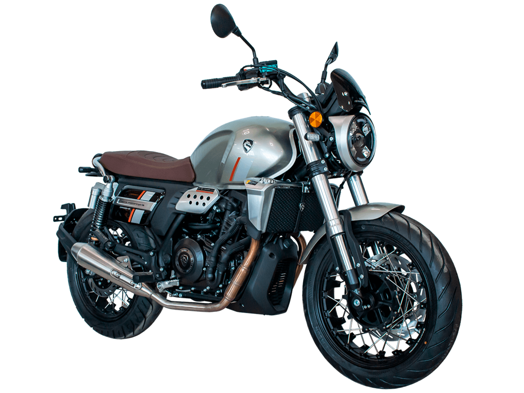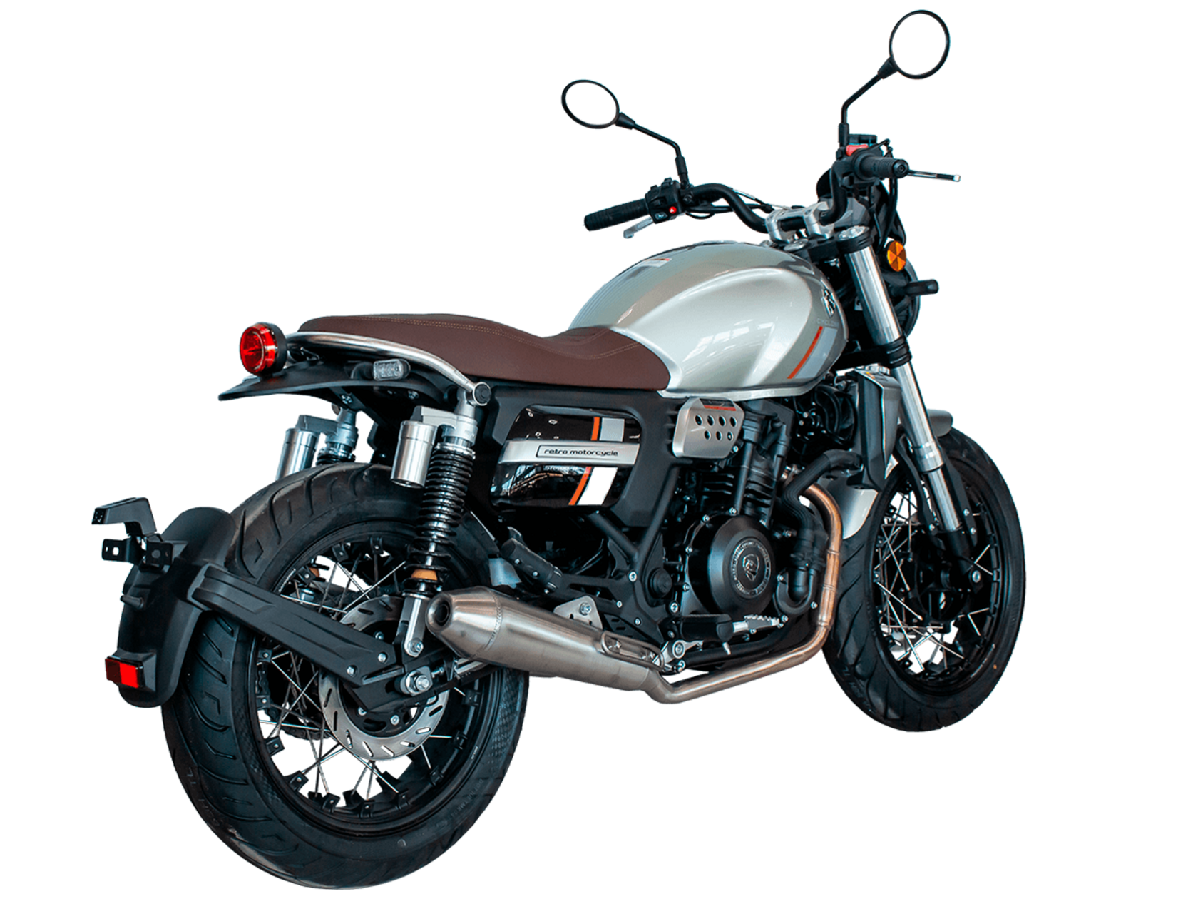 CYCLONE RE401 (SR400-B) 2024 – классик, в котором подчёркнутая простота объединяется с современными технологиями. Данная модель является более продвинутой версией модели RE3 (SR-400) – мотоцикл обладает более современным дизайном, снабжён стильными металлическими накладками на радиатор, а также топливным баком, объём которого увеличен до 20 литров.Двухцилиндровый четырёхтактный двигатель объёмом 401 см3 выдаёт 43 л.с. на 9500 об/мин. Инжекторный впрыск топлива с инжектором BOSCH увеличивает топливную экономичность, а также позволяет добиться высокой приёмистости и неприхотливости агрегата. Жидкостная система охлаждения не допустит перегрева двигателя даже при самом агрессивном вождении. На мотоцикл установлена 6-ступенчатая механическая коробка передач.Максимальная скорость мотоцикла составляет 150 км/ч.RE401 оснащён классическими спицованными колёсами диаметром 17 дюймов. Колёса обуты в бескамерные покрышки TIMSUN. С неровностями дороги эффективно справляются телескопическая вилка перевёрнутого типа спереди и маятник с двумя амортизаторами сзади. Ход передней подвески составляет 130 мм, задней – 81 мм. Оба компонента подвески являются регулируемыми. Эффективное и безопасное замедление с любых скоростей обеспечивают гидравлические дисковые тормоза с ABS спереди и сзади.Клиренс мотоцикла составляет 170 мм. Объём топливного бака – 20 л. Снаряжённая масса – 186 кг.Из дополнительного оборудования можно выделить USB-порт и датчики давления в шинах.Мотоцикл сочетает в себе отличные технические характеристики, комфорт и надёжность, что позволяет вам ощутить настоящую свободу на любой дороге.