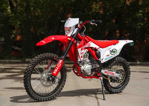 Мотоцикл Motax EX R300 позволит Вам испытать все грани удовольствия от экстремальной езды по бездорожью. Данная модель, предназначенная для гонок в стиле мотокросс и энедуро, является современным предложением от motax и олицетворяет новейшие разработки инженерной мысли.Этот яркий, стильный и агрессивный мотоцикл с отличными эксплуатационными и ходовыми характеристиками найдет отклик в душе любителя скорости и драйва. В основе транспортного средства – надежная хромомолибденовая рама, готовая к высоким нагрузкам и резким маневрам. Она выдержит райдера весом до 150 кг.Неотъемлемая часть мотокросса – мощная двойная регулируемая подвеска. Передняя телескопическая перевернутая амортизационная вилка с настройкой сжатия и отбоя и задний маятниковый моноамортизатор с аналогичной функцией способствуют мягкому и безопасному прохождению ухабов без излишней тряски и вибраций.Мотокросс эндуро оснащен одноцилиндровым четырехтактным двигателем рабочим объемом 299 см³. Мощности в 34 л.с. хватит, чтобы уверенно разгоняться до 130 км/ч. К достоинствам относится и высокий крутящий момент (25 Нм при 7000 об./мин.). Охлаждение мотора осуществляется с помощью воды. Системой подачи топлива выступает карбюратор Nibbi Racing PWK 34. Запуск мотора производится с электростартера и кикстартера.В основе ходовой части мотоцикла – классическая шестиступенчатая коробка передач (1-N-2-3-4-5-6), где N – нейтральная передача. Привод цепной. Качественная дисковая гидравлическая тормозная система гарантирует своевременное и четкое торможение.Колеса «обуты» в прочные покрышки с выраженным агрессивным рисунком протектора. Размер переднего колеса – 80/100-21", заднего – 110/90-18". У нас Вы можете купить Мотоцикл Motax EX R300 с бесплатной доставкой по РФ и гарантией до года. Также этот мотоцикл можно приобрести в рассрочку или в кредит.