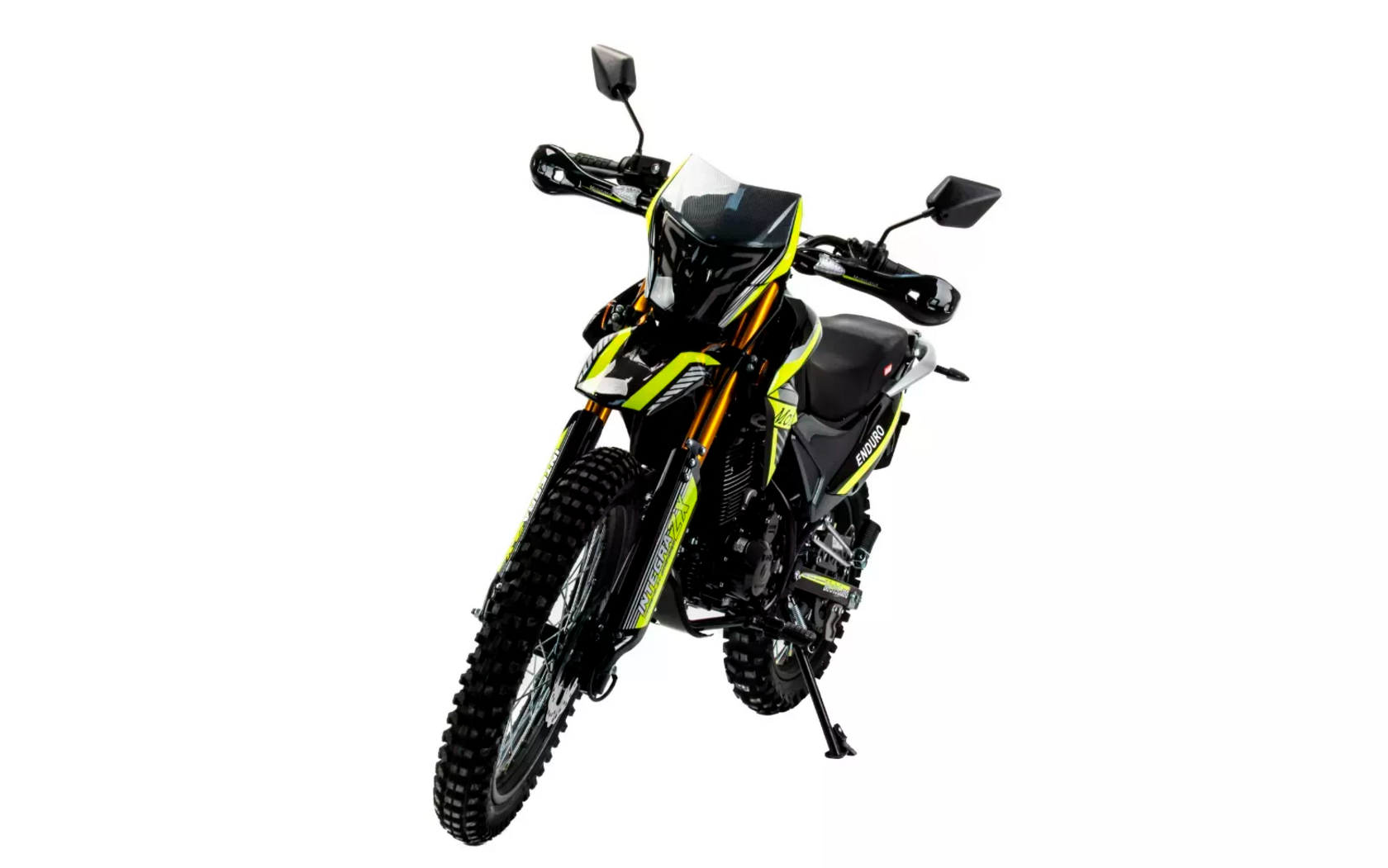 Мотоцикл Motoland ENDURO ST 250 (165FMM) NEON (2023г.) - позиционируется как самый недорогой полноразмерный мотоцикл двойного назначения – для асфальта и легкого бездорожья. Наличие ПТС дает возможность легально передвигаться по городским улицам и дорогам общего пользования, внедорожные качества позволяет без особых усилий преодолевать бездорожье.Мотоцикл маневренный и потрясающе удобный в городе, из за своей узкой и высокой формы, способный пролезть даже в минимальные зазоры между стоящими в пробке автомобилями.Максимальную скорость – 120 км/ч которой для города и неспешных прогулок за его пределы вполне достаточно.Мягко сидение для 2-х пассажиров и подножки пассажира для удобных совместных поездок.Тихий городской глушитель, который не доставит вам дискомфорта.Оборудован обновленной светодиодной линзованной фарой, светодиодными поворотниками и стоп сигналом, блокировкой замка зажигания.Скромный расход топлива, который почти не зависит от того, с какой скоростью едет мотоцикл и на каких оборотах работает двигатель, в среднем это 3,2-3,5 л на 100 км.При этом он прост в управлении и неприхотлив в обслуживании и подходит мотолюбителям любого возраста,и опыта вождения которым нужна техника для поездок из точки А в точку Б и обратно по дорогам и легкому бездорожью