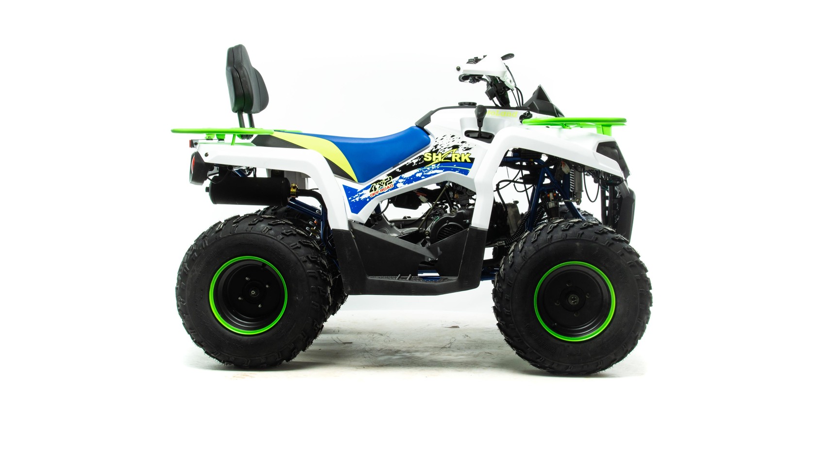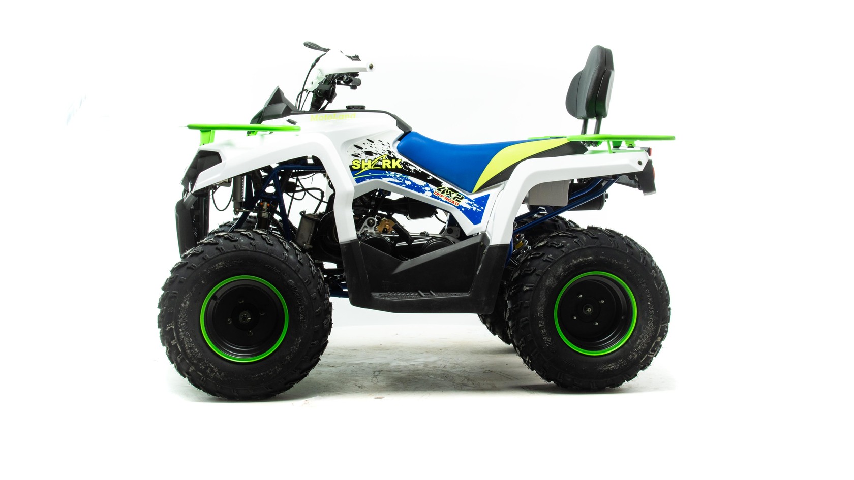 Квадроцикл Motoland 200 SHARK (2021 г.) - мощный квадроцикл с 4-тактным двигателем, отлично подойдет как подростку, так и взрослому пользователю для решения повседневных хозяйственных задач и несложных по уровню грязи лесных покатушек.Агрессивный и одновременно стильный дизайн нового квадроцикла без сомнения будет привлекать восхищенные и завистливые взгляды всех окружающих.Высокая износостойкость и предотвращение появления коррозииПрочная рама, выполненная из стали. Уменьшенный вес без потери прочности.