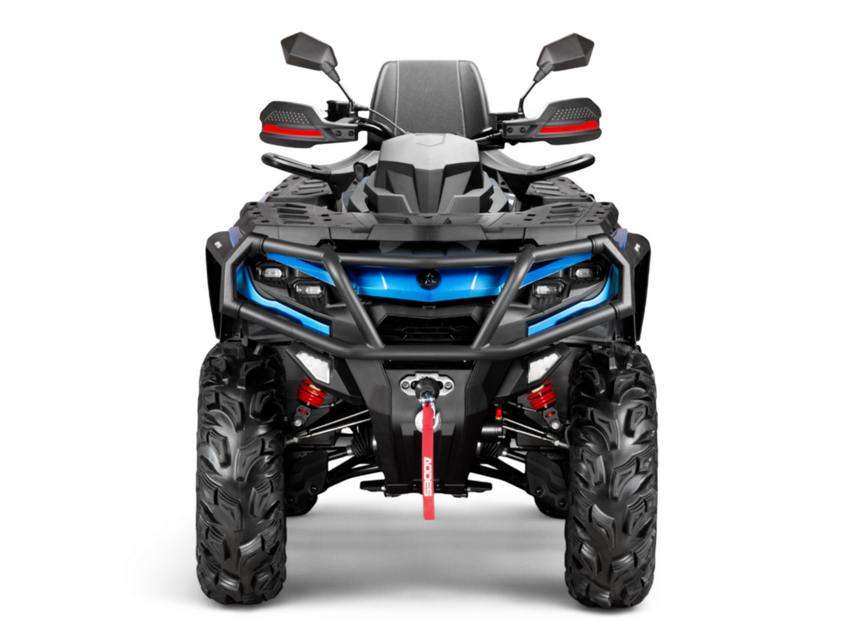 Комплектация Комбинация приборов Электронный ключ зажигания, LCD приборная панель 6,86 дюйма с индикацией основных параметров: вкл/выкл полного привода, индикацией уровня топлива, сигналов поворота и аварийной остановки, подсветки, переключение режимов усилителя руля, информация о техническом обслуживании. Лебедка Лебедка с синтетическим тросом и тросоукладчиком, тяговое усилие 1500 кг Элементы защиты Ветрозащита рук на руле, расширители колесных арок, усиленный передний и задний бампер, замок блокировки рулевого вала Дополнительное оборудование Электроусилитель руля, cветодиодная оптика, дополнительный свет, фаркоп с электроподготовкой, звуковой сигнал, сигналы поворота, зеркала заднего вида, бардачок объемом 2 литра под сиденьем, алюминиевые подножки водителя, эргономичная задняя и передняя багажные площадки, розетка 12 Вольт и USB.