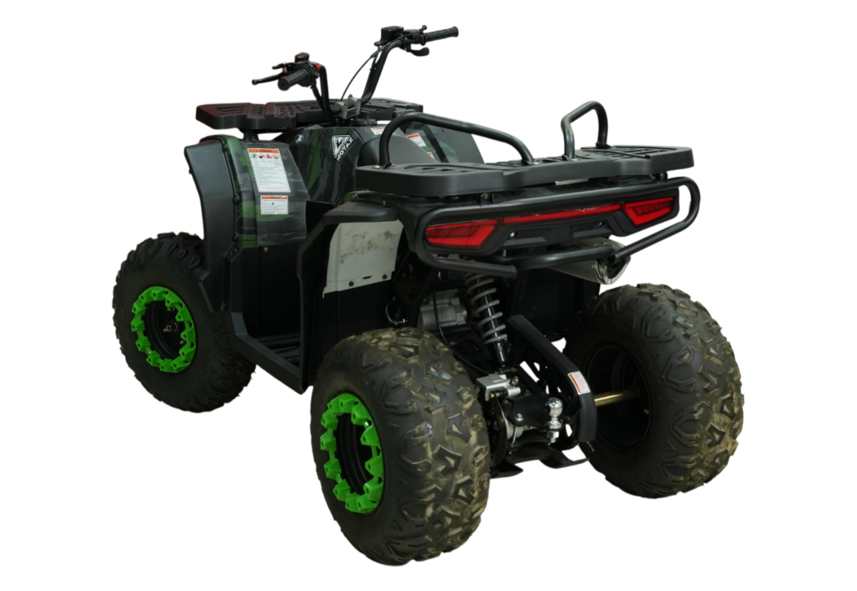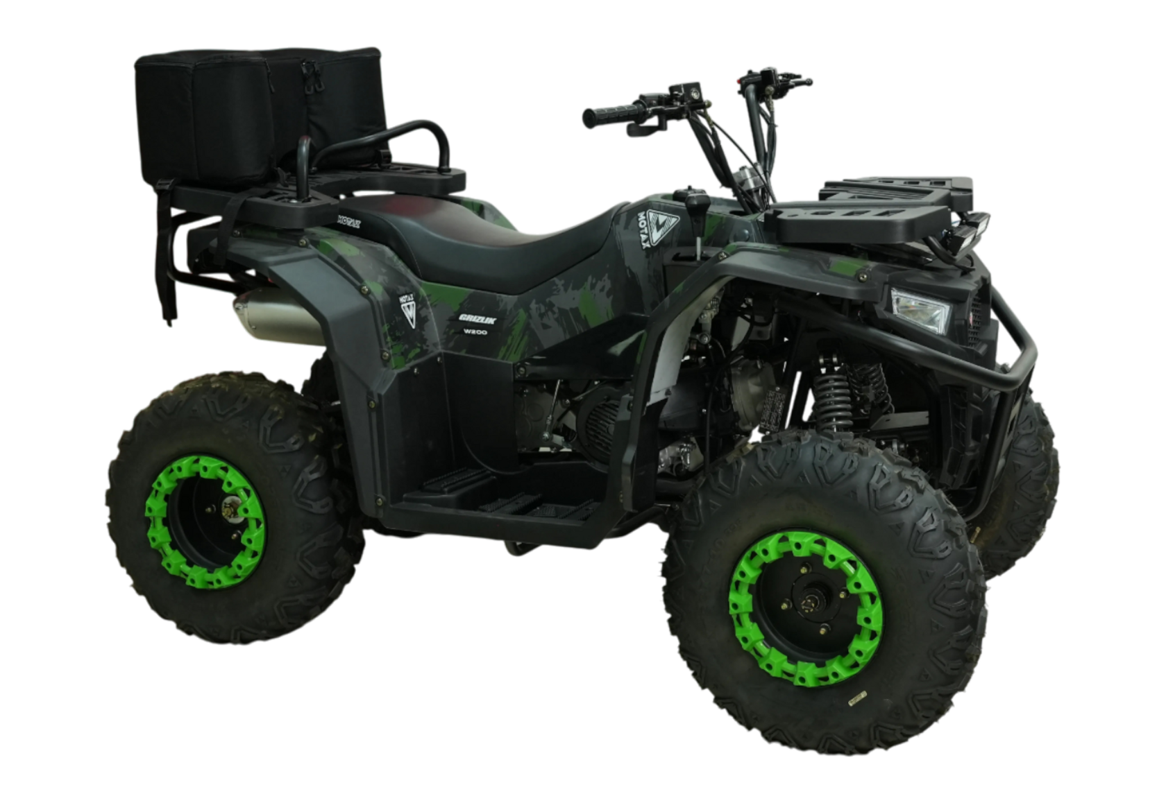 У квадроцикла MOTAX уверенный разгон и легкое управление, даже неопытный райдер с комфортом преодолеет неровные участки пути – всё благодаря независимому двойному амортизатору спереди и одиночному амортизатору удара сзади. Для удобного запуска в любых условиях в сборке у MOTAX GRIZLIK W200 электрический и ручной стартеры.