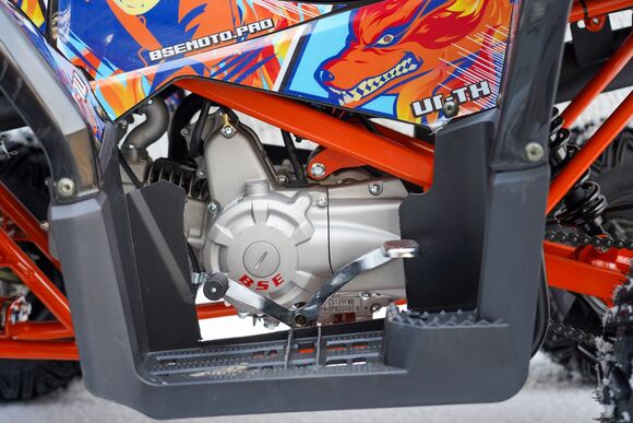 Этот квадроцикл оснащен электрическим стартером, что делает его запуск быстрым и удобным. Полуавтоматическая трансмиссия с режимом 1+1 позволяет легко управлять квадроциклом, обеспечивая плавное переключение скоростей. Воздушное охлаждение двигателя гарантирует его надежную работу даже в условиях высокой нагрузки.