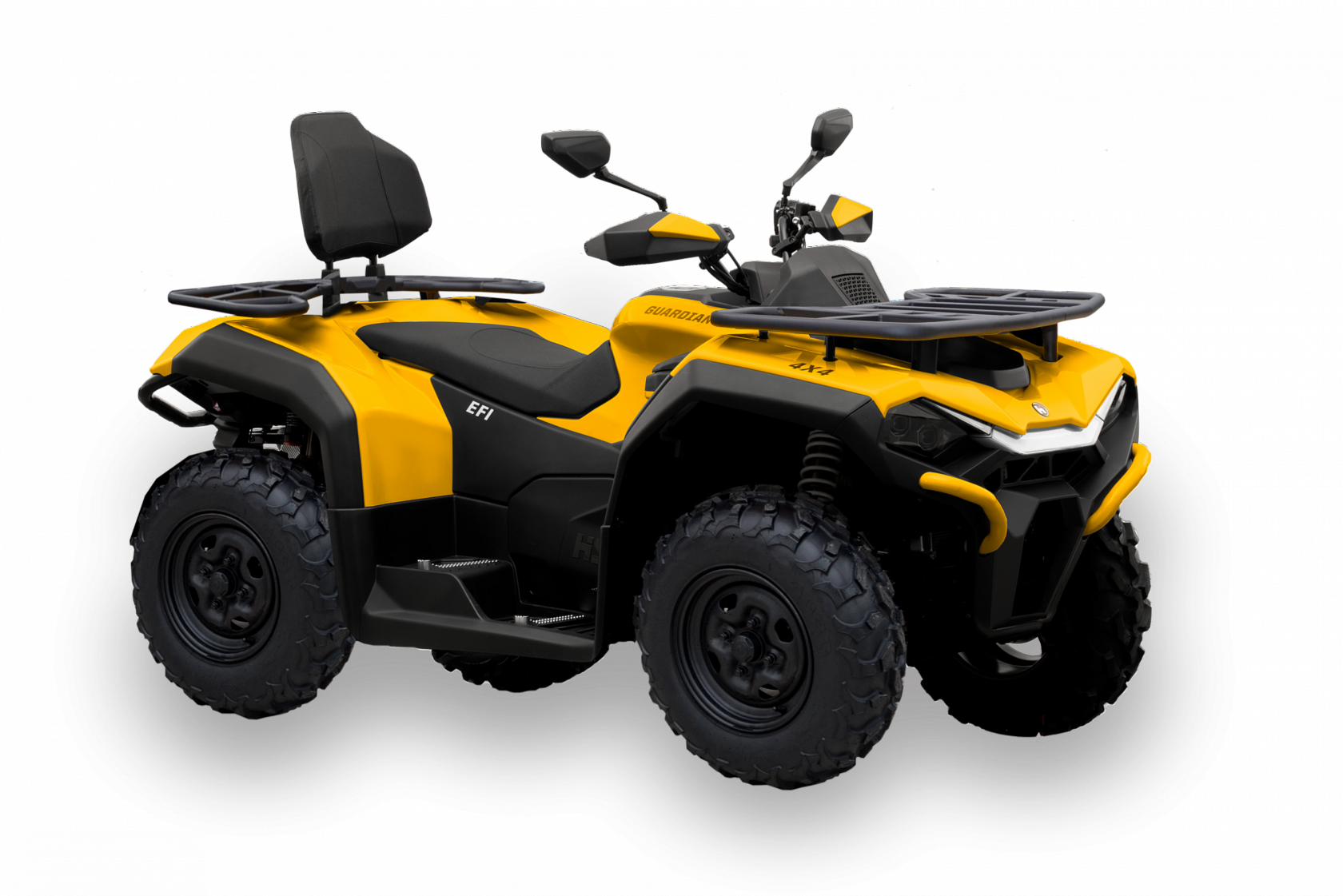 Представляем новый квадроцикл HiSUN GUARDIAN 400 L. Его девиз – надежность, проходимость, комфорт и маневренность. Он оснащен всем необходимым для вашего удобства: цифровая панель приборов, светодиодная оптика, передний и задний багажники, металлические бамперы, защита рук и зеркала заднего вида. Одним из ключевых преимуществ техники HiSUN является мощный четырехтактный двигатель, который позволяет занимать лидирующие позиции в своем классе.Современные светодиодные LED-фары обеспечивают яркое освещение дороги, что способствует безопасности передвижения в темное время суток, а крупный протектор колес обеспечивает отличное сцепление с грунтом. Удобная эргономика гарантирует высокий уровень комфорта как для водителя, так и для пассажира, а вместительный бензобак и экономичный расход топлива порадуют любого владельца!Преимущества моделиЦифровая панель приборов (7’, TFT Display)