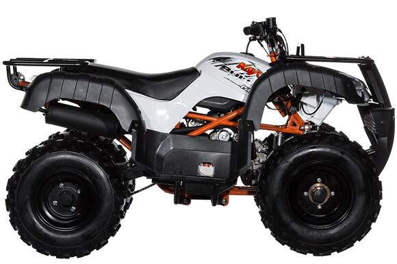 Kayo AU150 базируется на стальной раме, разработанной инженерами Kayo, и оснащается 4-тактным 150-кубовым двигателем YX, позволяющим развивать максимальный крутящий момент в 9,2 Hm при 6500 об/мин. Максимальная развиваемая скорость, заявленная производителем, – свыше 75 км/ч; бак для горючего, вмещающий более 7 литров топлива, обеспечит новинке приличный запас хода. Квадроцикл отличают полуавтоматическое сцепление, наличие электростартера и системы управления зажиганием CDI. На квадроцикле применена цепная трансмиссия; общее количество передач – четыре, среди них есть и задняя передача. Колеса оснащены надежными дисковыми тормозами; диаметр передних колес со стальными ободьями – 10 дюймов, размер задней пары колес – 9 дюймов. Большей надежности добавляет наличие обслуживаемой подвески, что увеличивает срок ее службы, а также удобства сервисного обслуживания. Kayo AU150 Bull – утилитарная модель квадроцикла, поэтому конструкторы предусмотрели полную влаго- и грязезащиту, также на «квадрике» установлены фара, звуковой сигнал, багажные решетки спереди и сзади.