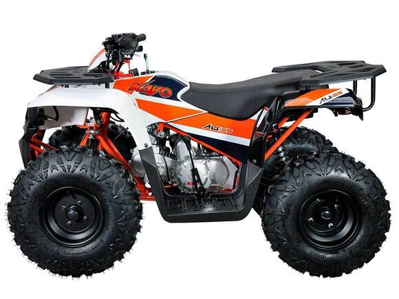 KAYO AU125 – утилитарный квадроцикл, особенно популярный среди юных любителей внедорожных приключений возрастом от 10-12 лет и старше. Обновленную модель отличают простота и удобство управления, а также широкие возможности повседневного использования..Модель оснащается проверенным экономичным 4-тактным двигателем воздушного охлаждения рабочим объемом 120 см3 и полуавтоматической трансмиссией с возможностью переключения в реверсный режим хода. Возможности силовой установки позволяют развивать максимальную мощность в почти 8 лошадиных сил..Квадроцикл собран на прочной раме из стальных труб; подвеска представлена нерегулируемыми амортизаторами, обеспечивающими комфорт передвижения в самых разных условиях. Колеса собраны на стальных 8-дюймовых дисках; за безопасность отвечает производительная дисковая гидравлика. Дополнительный комфорт использования обеспечивают комплект светового оборудования, передний и задний багажники..Надежный и компактный мотовездеход KAYO AU125 станет надежным спутником в поездках по пересеченной местности в любое время года, а также может выступить в роли незаменимого помощника в подсобном хозяйстве загородного дома или дачи.