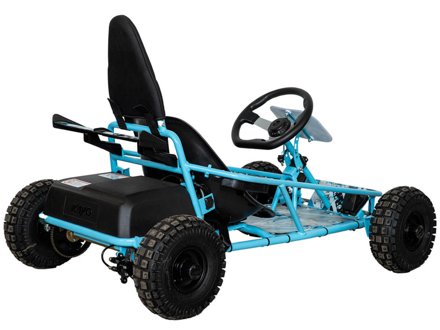 Квадроцикл KAYO еS50 – детская модель с электрическим двигателем для весёлых и безопасных заездов на природе.Оснащён щёточным двигателем постоянного тока мощностью 800 Вт с воздушным охлаждением. Обеспечивает плавную и бесшумную езду без выхлопных газов. Свинцово-кислотный аккумулятор 36V9AH обеспечивает около 70 минут непрерывной работы на одном заряде. Полная зарядка аккумулятора занимает 5-6 часов.Имеет 2 скоростных режима: 12 км/ч и 19 км/ч. Трансмиссия представлена 2-ступенчатой коробкой передач с реверсом.На квадроцикле используются колёса диаметром 3 дюйма. На задних колёсах установлены механические дисковые тормоза.Габариты 1100х700х720 мм. Высота по седлу 175 мм, клиренс 95 мм, колёсная база 850 мм. Сухой вес 43 кг.
