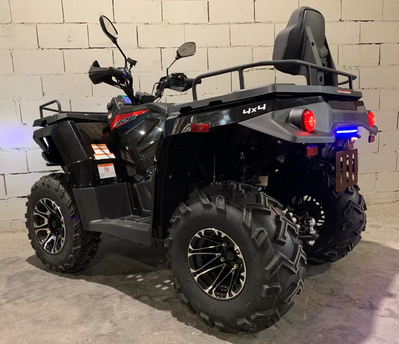 Качество и многофункциональность, простота в использовании и надежность – вот, что является преимуществом при покупке квадроцикла Linhai Yamaha F320 PROMAX. Jiangsu Linhai и Yamaha Motor Company – крупнейшие бренды в Китае, которые совместными усилиями производят внедорожник.Начало работы мотора от системы электронного пуска, питание происходит по инжекторному типу. Силовая установка имеет рабочий объем 275 куб. см, а мощность в 22 л.с. с легкостью разгоняет внедорожник до 80 км/ч. Квадроцикл имеет массу 280 кг.