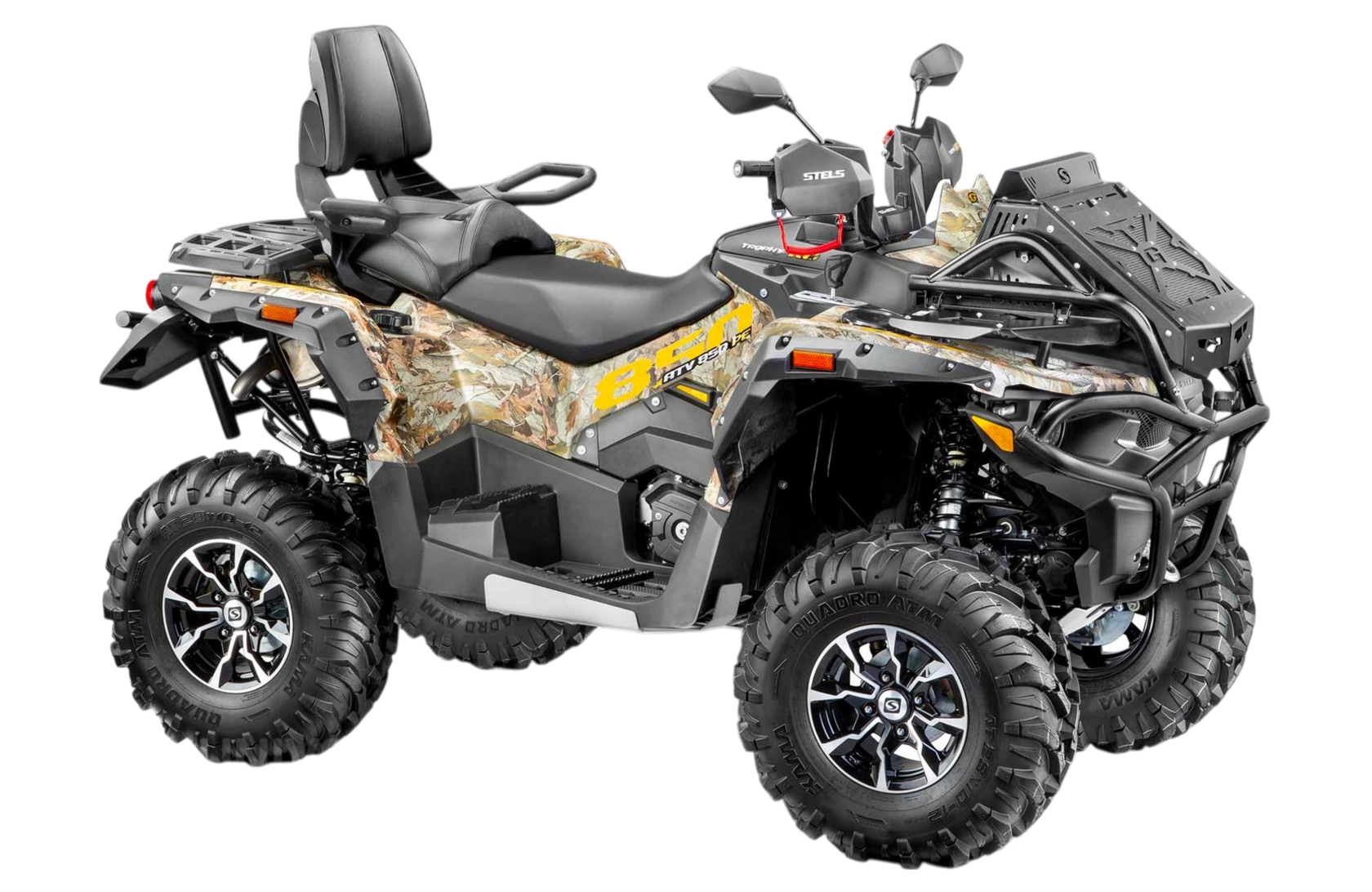 Флагманский квадроцикл для тех, кто не признает границ! STELS 850 GUEPARD Trophy PRO EPS — это воплощение мощи, технологий и непревзойденной проходимости. С 75-сильным инжекторным двигателем, электроусилителем руля и полноценным полным приводом этот вездеход готов к самым экстремальным приключениям — от охоты в глухой тайге до многодневных экспедиций.