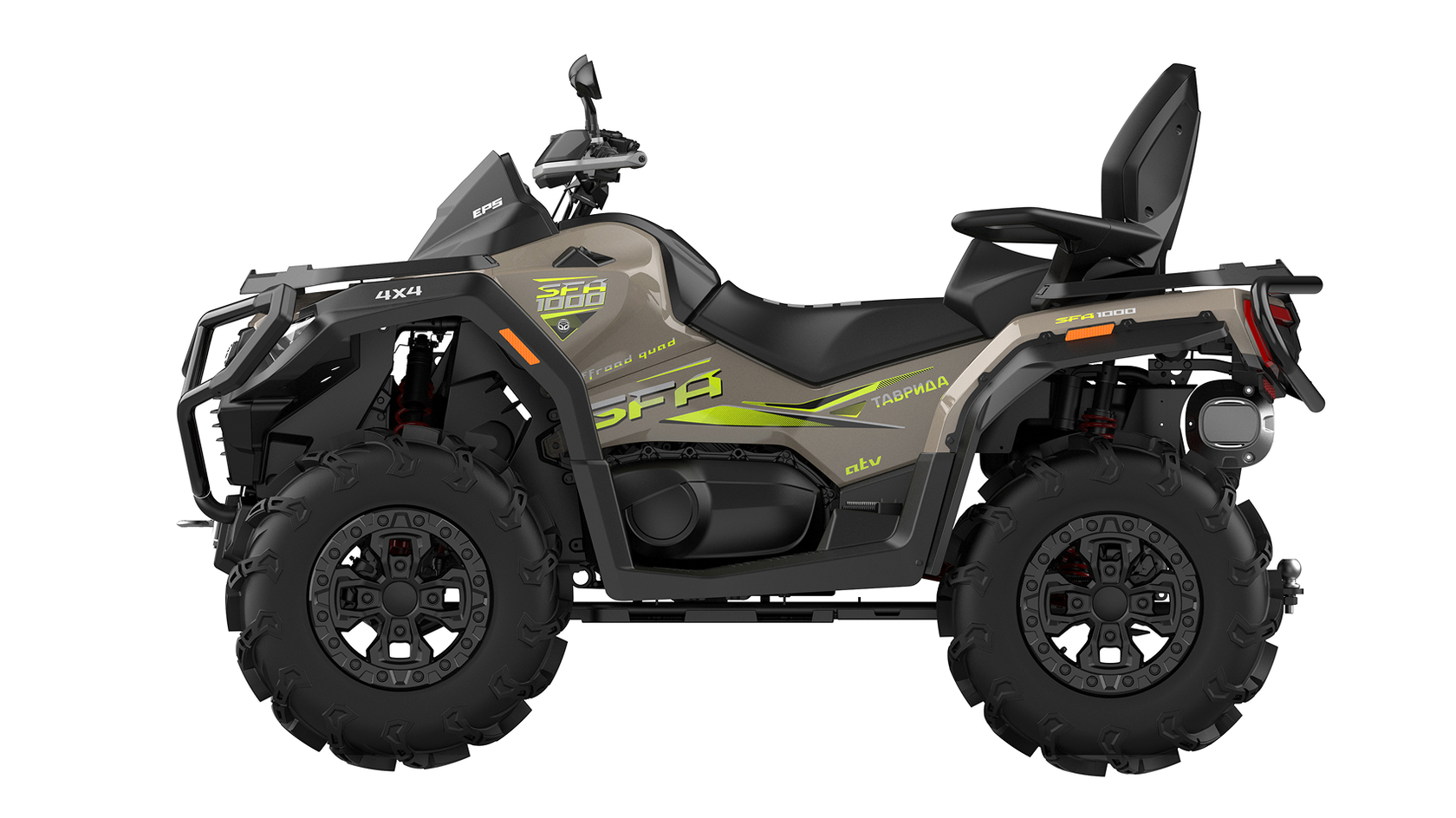 «ТАВРИДА SFA 1000» – новый современный двухместный российский квадроцикл, оснащённый литровым двигателем мощностью 95 л.с., созданный для тех, кто ценит динамику, силу и маневренность, хочет получить максимальные эмоции от управления совершенной техникой.При создании и производстве квадроцикла применены новейшие технологии, которые обеспечивают современный уровень качества и максимальную безопасность эксплуатации весь период срока службы квадроцикла.«ТАВРИДА SFA 1000» подходит как для опытных райдеров, так и для новичков, что делает его универсальным выбором. Квадроциклы «ТАВРИДА SFA 1000» демонстрируют отличную проходимость в российских суровых условиях, благодаря независимой подвеске, высокому дорожному просвету и шинам, которые обеспечивают надежное сцепление с грунтом.Выбирая «ТАВРИДА SFA 1000», Вы выбираете качество и уверенностьДвигатель 976 см³, 95 л.с.Оснащённый современным инжекторным двигателем, квадроцикл демонстрирует отличную динамику и уверенную тягу в любых условиях.– Экономичный расход топлива
