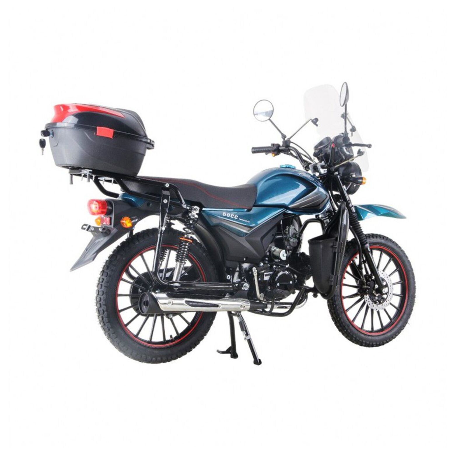 Мопед FXMOTO FX-50 — это идеальное сочетание современного дизайна, надежности и комфорта. Этот компактный транспорт создан для тех, кто ценит удобство в повседневной жизни и любит выезжать за город на природу. С его мощным двигателем объемом 125 куб. см (на базе ДВС 50 куб. см) и воздушным охлаждением, он легко справляется как с городскими улицами, так и с легким бездорожьем.Одним из главных преимуществ FXMOTO FX-50 является его современная оптика. Полностью диодная фара головного света, светодиодные задние фонари и поворотники обеспечивают отличную видимость в любое время суток, а также делают мопед заметным на дороге. Ветровое стекло защищает от ветра и грязи, делая каждую поездку более комфортной.Модель оснащена увеличенным топливным баком, что позволяет реже останавливаться для заправки и наслаждаться длительными поездками. Для дополнительного удобства предусмотрен USB-разъем, который позволит заряжать ваши гаджеты прямо в пути. Кофр и дополнительные карманы на передней дуге помогут организовать пространство для хранения вещей, будь то покупки, инструменты или личные принадлежности.Дизайн FXMOTO FX-50 поражает своей современностью и функциональностью. Новые диски и обновленное переднее крыло не только улучшают внешний вид, но и обеспечивают лучшую защиту от грязи. Цветовая гамма включает пять вариантов: классический черный, яркий красный, глубокий синий, спокойный белый и уникальный оттенок морской волны. Каждый найдет цвет, который подчеркнет его индивидуальность.Безопасность всегда на первом месте. Мопед оснащен дисковым передним тормозом и барабанным задним, что гарантирует надежное торможение даже в сложных условиях. Современный электромеханический щиток приборов предоставляет всю необходимую информацию о состоянии мопеда, а шины размером 2,50/17 (передняя) и 2,75/17 (задняя) обеспечивают отличное сцепление с дорогой.FXMOTO FX-50 — это не просто мопед, это ваш надежный спутник в любой ситуации. Будь то ежедневные поездки на работу, учебу или отдых за городом, этот мопед справится с любой задачей. Его компактность, маневренность и экономичность делают его идеальным выбором для современного человека.