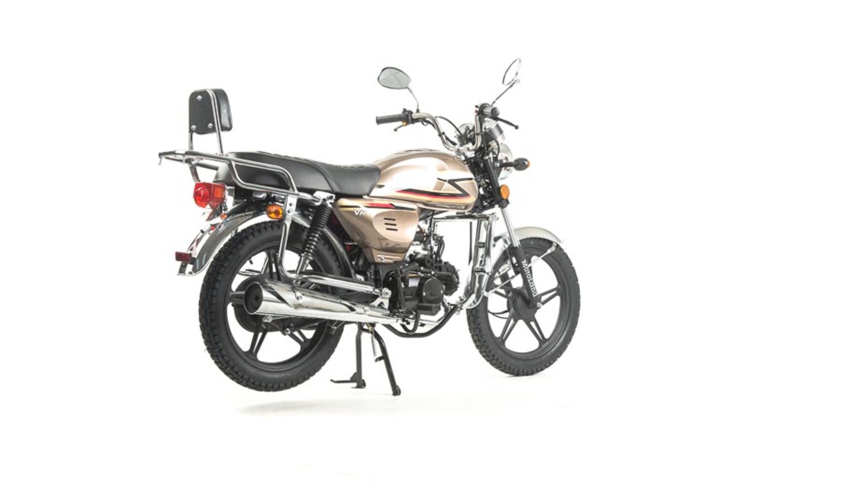 Комплектация Барабанные тормоза установлены на переднем и заднем колесе. Багажник, зеркала заднего вида, центральная и боковая подножки.