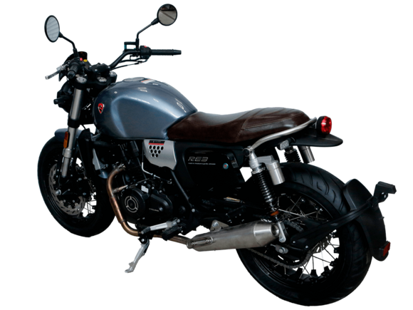 CYCLONE RE3 (SR400) – классик, в котором подчёркнутая простота объединяется с современными технологиями.Двухцилиндровый четырёхтактный двигатель объёмом 401 см3 выдаёт 43 л.с. на 9500 об/мин. Максимальный крутящий момент достигается на 8000 об/мин и составляет 34 Н·м. Инжекторный впрыск топлива с инжектором BOSCH увеличивает топливную экономичность, а также позволяет добиться высокой приёмистости и неприхотливости агрегата. Жидкостная система охлаждения не допустит перегрева двигателя даже при самом агрессивном вождении. На мотоцикл установлена 6-ступенчатая механическая коробка передач.Максимальная скорость мотоцикла составляет 140 км/ч.RE3 оснащён классическими спицованными колёсами диаметром 17 дюймов. Колёса обуты в бескамерные покрышки TIMSUN. С неровностями дороги эффективно справляются регулируемая телескопическая вилка перевёрнутого типа спереди и маятник с двумя амортизаторами сзади. Ход передней подвески составляет 110 мм, задней – 81 мм. Эффективное и безопасное замедление с любых скоростей обеспечивают гидравлические дисковые тормоза с ABS спереди и сзади.Клиренс мотоцикла составляет 145 мм. Объём топливного бака – 19 л. Снаряжённая масса – 186 кг.Из дополнительного оборудования можно выделить USB-порт, подсветку пультов и датчики давления в шинах.Мотоцикл сочетает в себе отличные технические характеристики, комфорт и надёжность, что позволяет вам ощутить настоящую свободу на любой дороге.
