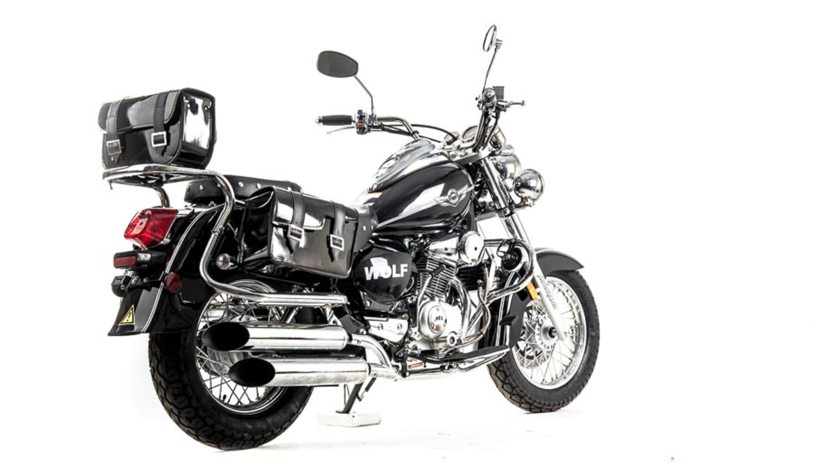 Комплектация Передний тормоз гидравлический дисковый с однопоршневым суппортом, прочно закреплён на 6 болтов. Тормозной шланг защищён специальным изолятором. Задний тормоз барабанный, легко регулируется даже в полевых условиях.Руль сечения 22 мм с высоким подъёмом удобен для мотоциклистов разного роста. Зеркала заднего вида большие, с хорошим обзором. На ручках расположены кнопки дальнего и ближнего света, сигнал аварийной остановки, кнопки включения и выключения двигателя, блинкер, поворотники, звуковой сигнал. Также на руль вынесен подсос, что удобно при холодном запуске.Мотоцепь 420 защищена специальным кожухом. На чоппер установлены 2 выхлопные трубы.