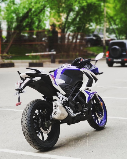 Комплектация Багажник, зеркала, крепление под номер, подножки второго пассажира. Тормоза дисковые.
