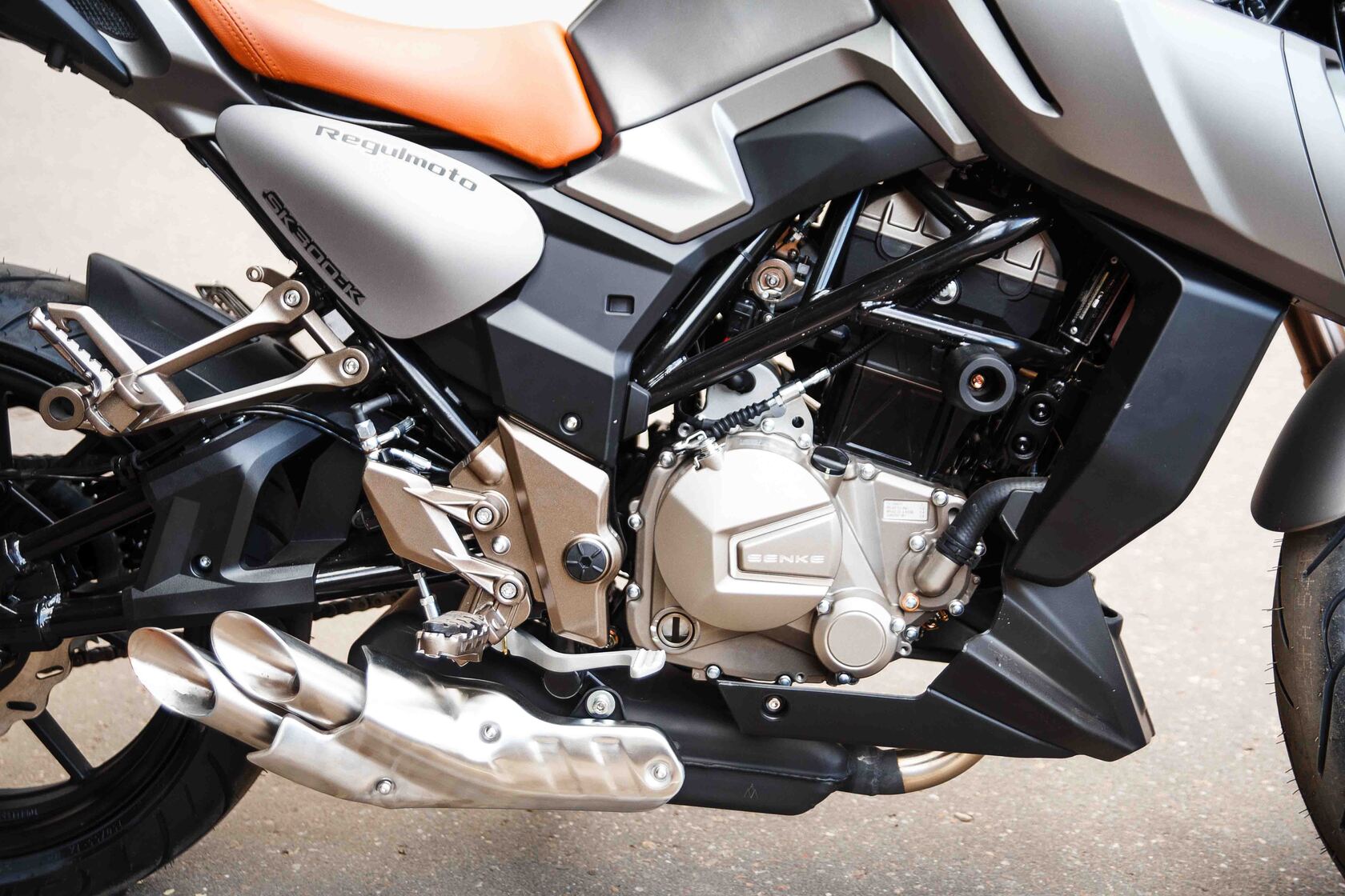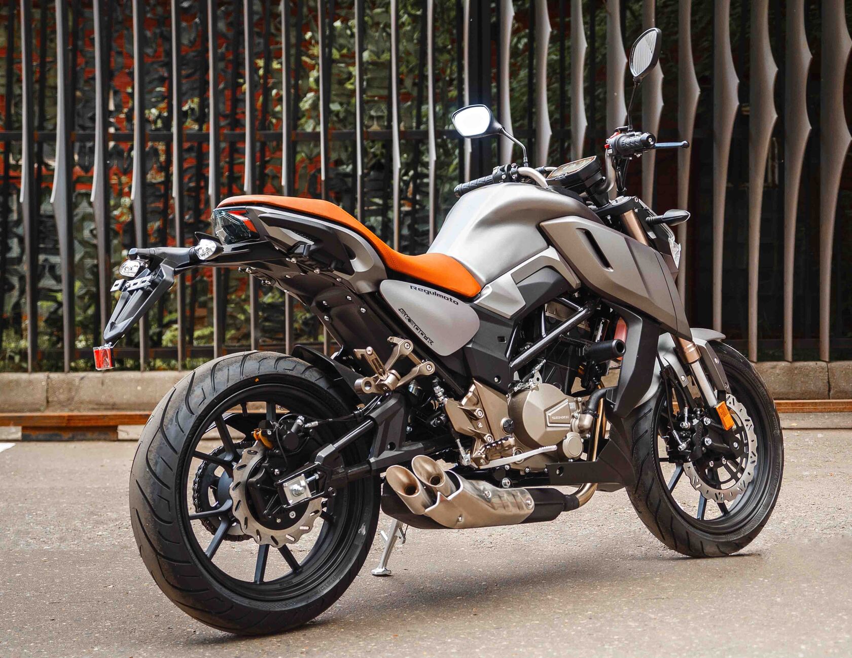Топовая модель линейки мототехники ведущего китайского производителя Senke, дорожный мотоцикл Regulmoto ALIEN MONSTER 300, оснащается 4-тактным 300-кубовым двигателем с водяным охлаждением и балансировочным валом, установленным в стальной раме на сайлентблоках, что позволило свести к минимуму вибрацию при работе мотора. Подвеска мотоцикла представлена усиленной телескопической вилкой перевернутого типа спереди и моноамортизатором сзади. За безопасность отвечают двухдисковые 4-поршневые тормоза на переднем колесе и дисковый 2-поршневой тормоз на заднем колесе, а также полный комплект светового оборудования на светодиодных элементах, галогеновая передняя фара и зеркала заднего вида.