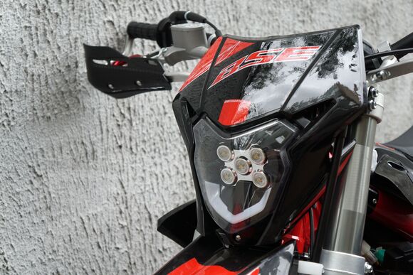 BSE Z11 – спортивный, мощный и легкий полноразмерный эндуро мотоцикл на стальной раме. Z11 оснащается эксклюзивным мотором TYAN TYX300 (BSE 4V300R) объёмом 300 куб см. с 4-х клапанной ГБЦ с воздушным охлаждением. Испытания на диностенде показали мощность в 27 лс. Особенно мотор богат крутящий моментом в низком и среднем диапазонах оборотов. Система подачи топлива – спортивный карбюратор PWK 34. Установлен настроенный прямоточный выхлоп. Рама мотоцикла стальная, специально усиленная инженерами BSE. Установлена 6 ступенчатая КПП с идеально подобранными передаточными числами. Z11 уже в заводской комплектации готов к покорению серьезного бездорожья благодаря наличию полностью регулируемой спортивной подвески MOJO Racing c большими ходами, рычагам задней прогрессии и “злой” внедорожной резине Carrystone. На мотоцикле установлены: усиленные легкосплавные колёсные диски MOJO, усиленная цепь, датчик моточасов, усиленные траверсы, складные СNC рычаги тормоза и сцепления, защита коллектора. Мощная гидравлическая тормозная система HSК Racing остановит байк в любых условиях. На BSE Z11 также можно с комфортном отправиться в продолжительное путешествие благодаря удобному сиденью, широкому спортивному рулю, наличию электростартера и топливному баку на 6.5 литра. C яркой LED фарой головного света можно кататься в ночное время. Почувствуй преимущества мощного 4-клапанного 300 кубового мотора, энергоемкой подвески и легкого полноразмерного шасси на любых трассах и направлениях!
