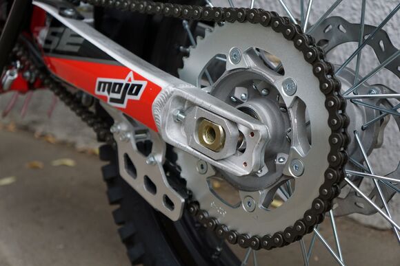 Комплектация На мотоцикле установлены: усиленные легкосплавные колёсные диски MOJO, усиленная цепь, датчик моточасов, усиленные траверсы, складные СNC рычаги тормоза и сцепления, защита коллектора. Мощная гидравлическая тормозная система HSК Racing остановит байк в любых условиях.