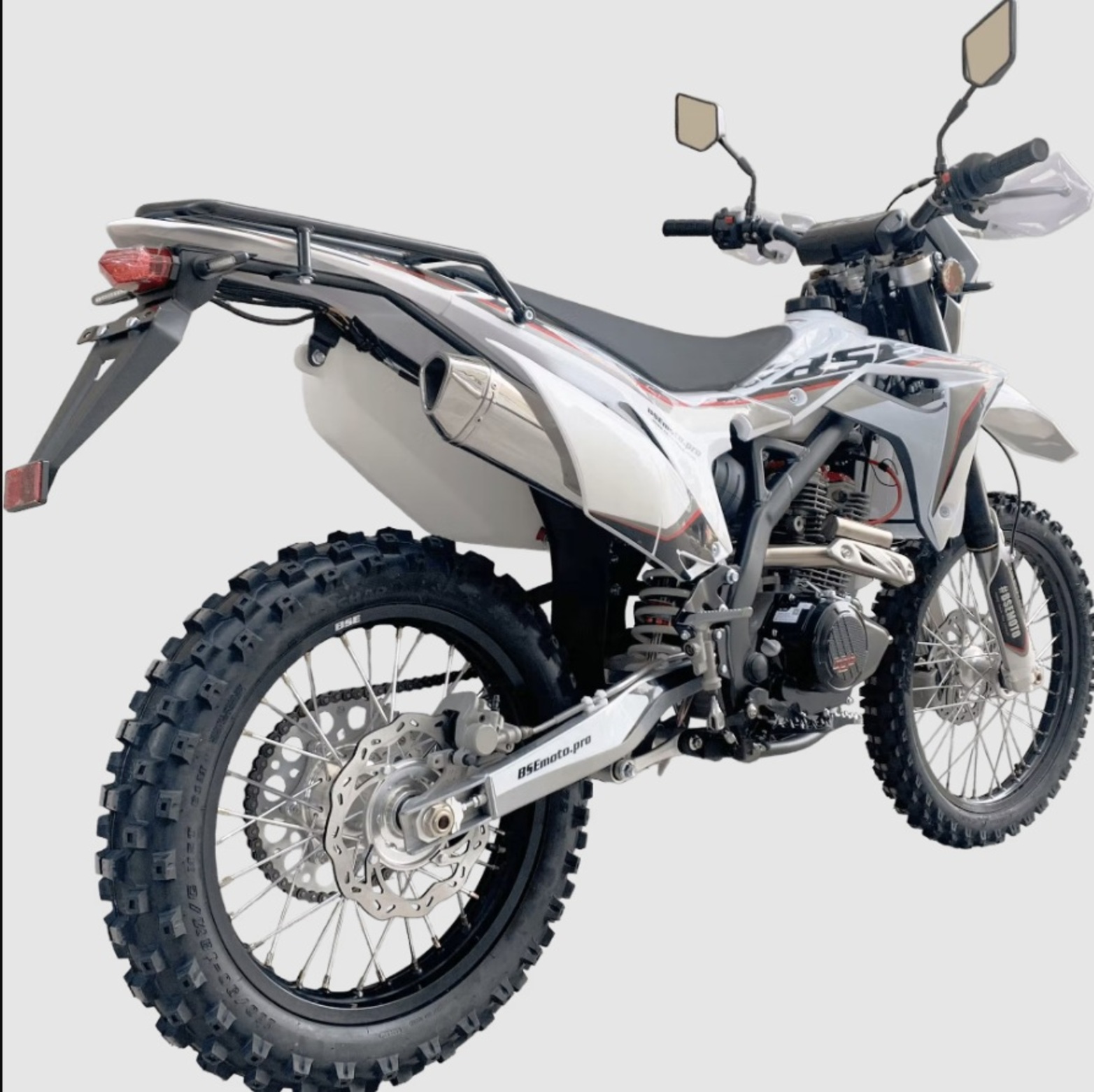 BSE Z6 Y - идеальный мотоцикл для долгих эндуро путешествий! Благодаря наличию дополнительного топливного бака на 4 литра, удобного сиденья и пассажирских подножек. Имеется возможность закрепить поклажу на задний багажник.BSE Z6 Y комплектуется всем необходимым для передвижения по асфальту: возможность постановки на учет, электростартер, яркая LED фара головного света и задний стоп сигнал, наличие поворотников и зеркал заднего вида, широкий спортивный алюминиевый руль. Благодаря ЖК приборной панели вы всегда будете знать о всех главных параметрах мотоцикла. Мощная гидравлическая тормозная система HSК Racing остановит байк в любых условиях.Z6 Y - идеально сбалансированный, устойчивый, мощный эндуро мотоцикл на прочнейшей усиленной стальной раме. Сердце Z6 Y– мощный, эластичный и надежный 250 кубовый Zongshen ZS 172 FMM мощностью 21 лс. Система подачи топлива – проверенный карбюратор Nibbi 28.Крепкий, надёжный и неприхотливый BSE Z6 Y обладает всеми качествами настоящего эндуро. Подойдёт, как и для среднего уровня катания, так и для продвинутого райдера. Z6 Y оснащается регулируемой подвеской MOJO Racing c большими ходами, рычагам задней прогрессии и вилкой “перевертышем”. Алюминиевые колёсные диски с буксаторами, внедорожная резина, усиленная цепь, датчик моточасов, защита рук – ваши возможности на бездорожье безграничны!Наслаждайтесь преимуществами BSE Z6 Y на любых покрытиях.