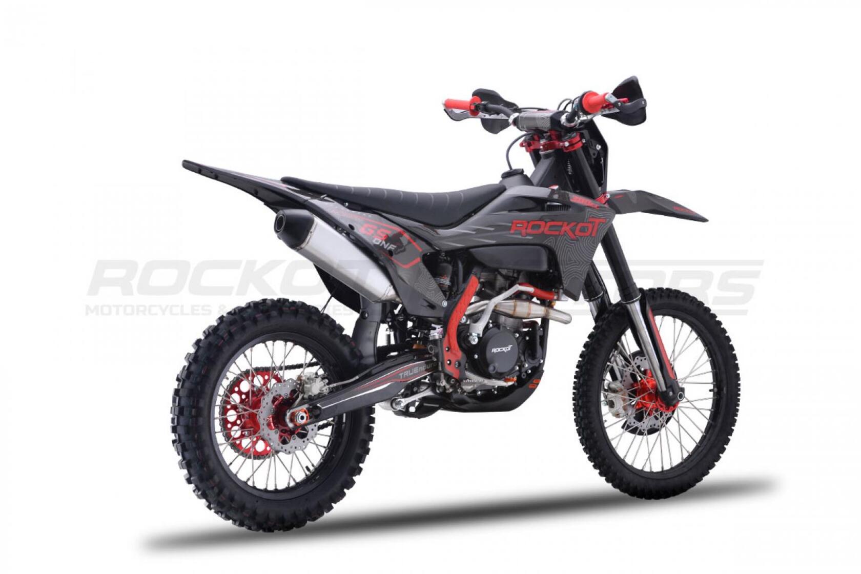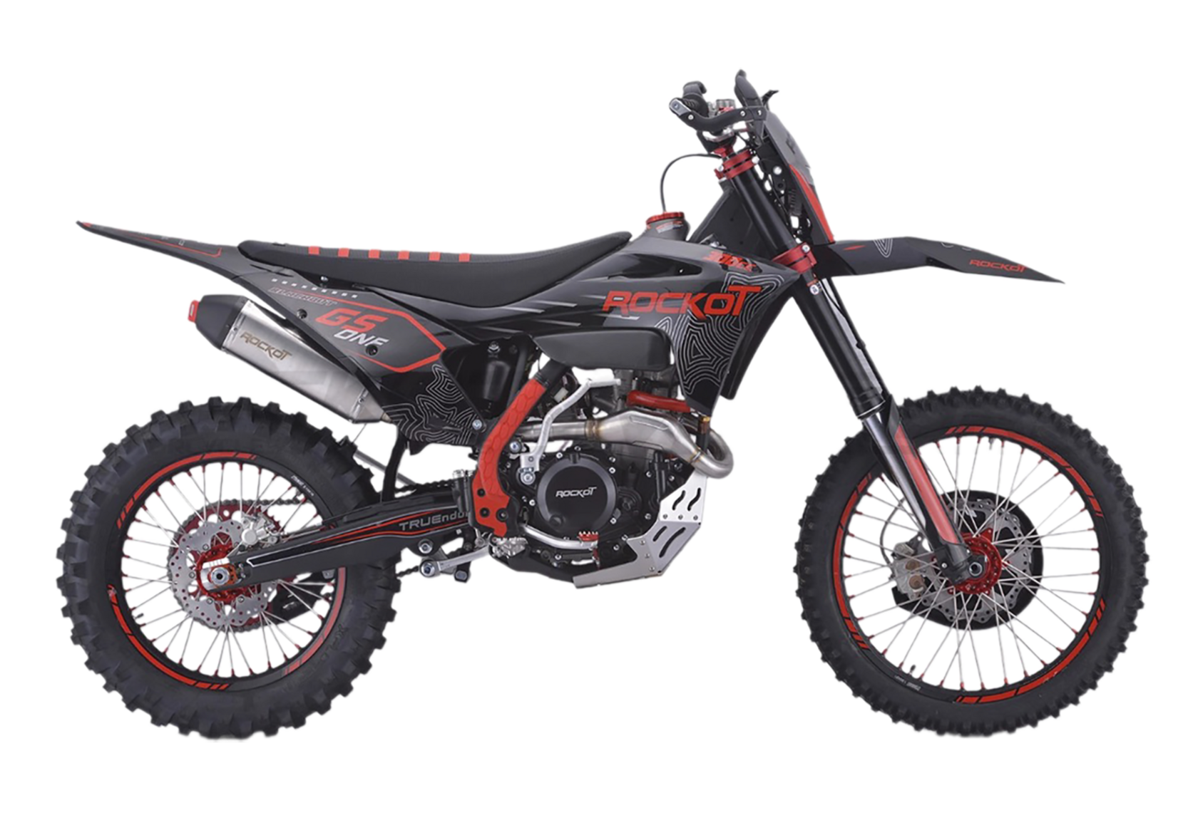 Мотоцикл кроссовый ROCKOT GS ONE Blackout-300. В стальную, усиленную раму заключен 300 кубовый двигатель Zongshen 4Т 177ММ с водяным охлаждением и балансирным валом гасящим вибрации. Мотоцикл выгодно выделяется интересной и сбалансированной комплектацией, качественной сборкой, неповторимым и интересным дизайном в стилеGASGAS"21. Подвеска полностью регулируемая.Спередителескопическая вилка KKE перевернутого типа 48/53/60-940 однокартриджная регулируемая, с настройкой отбоя и сжатия.Задняя подвеска:моноамортизатор KKE 470 мм регулируемый, с настройкой сжатия и отбоя. Прогрессия с рычажной системойУстановлена светодиодная фара и полнофункциональная LED приборная панель