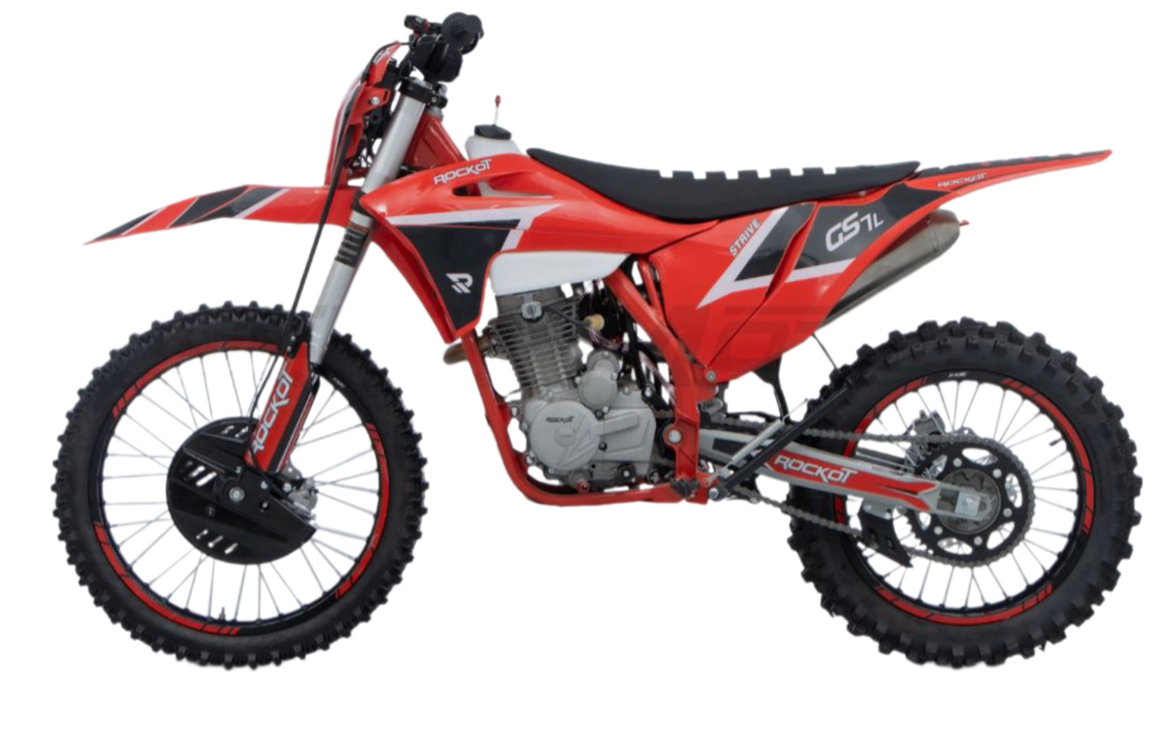 1Мотоцикл ROCKOT GS7L Strive представляет собой воплощение современных технологий и инноваций в мире мотоциклов эндуро. Этот мотоцикл идеально подходит как для профессиональных гонщиков, так и просто любителям езды на природе.Основное внимание при разработке было уделено мощному 1-цилиндровому мотору Loncin 4T 171FMM с объемом 249 куб. см и современной карбюраторной системой топлива PWK34. ROCKOT GS7L Strive обеспечивает надежный запуск как с помощью электростартера, так и с помощью кик-стартера, что добавляет удобства и гибкости в использовании.Мотоцикл оснащен прочной рамой шестигранного сечения, усиленной хромомолибденовым сплавом, а также стальным маятником и литой алюминиевой поперечиной для надежной защиты и долговечности в самых разных условиях. Амортизационная система ROCKOT GS7L Strive включает телескопическую переднюю вилку и регулируемый задний моноамортизатор, благодаря чему байк можно легко настроить под индивидуальные предпочтения и особенности трассы.Система тормозов оснащена дисковыми гидравлическими тормозами спереди и сзади, благодаря чему достигается уверенное и эффективное торможение на любой скорости. Колеса ROCKOT GS7L Strive с усиленными алюминиевыми ободами и специальными шинами GUMMY обеспечивают отличное сцепление с любой поверхностью.Дизайн мотоцикла воплощает современные тенденции: светодиодные фары, алюминиевый руль переменного сечения и панель приборов со счетчиком моточасов для удобства контроля.