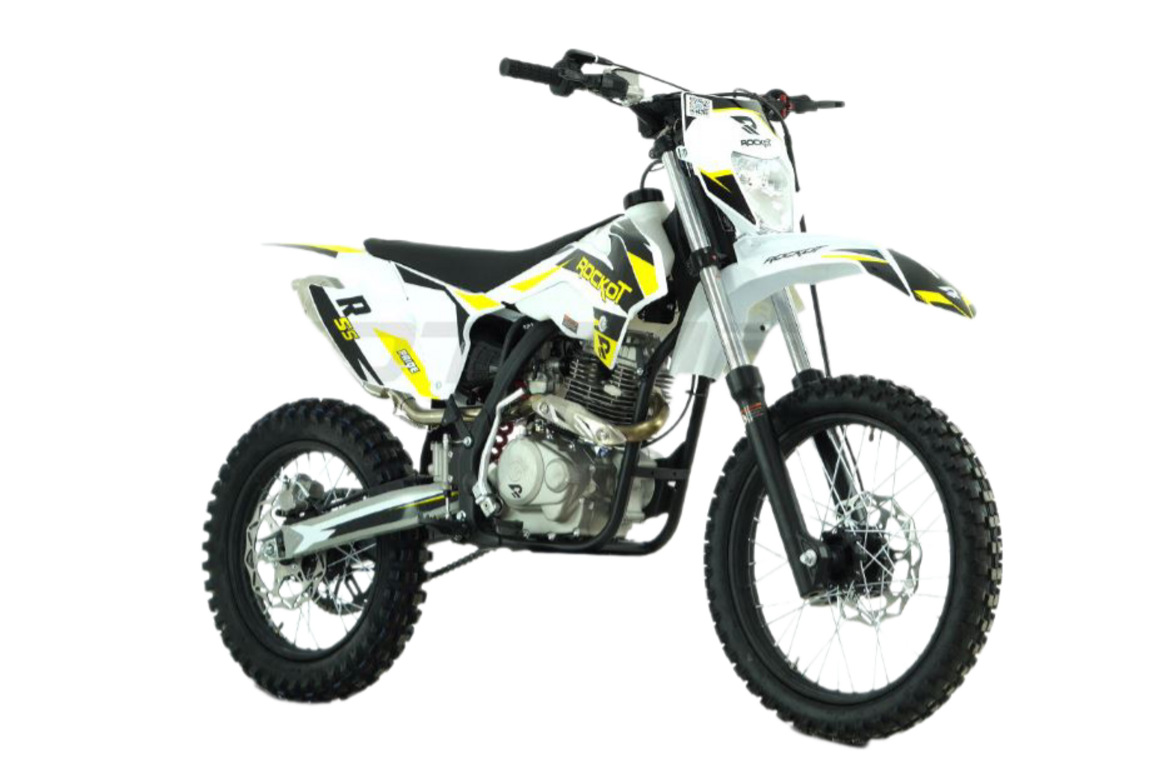 1ROCKOT R5S - эндуро мотоцикл начального уровня, который создан для новичков и подростков. Небольшая высота по седлу и короткая колесная база обеспечивают отличную управляемость и позволяют управлять мотоциклом людям, чей рост достигает 150 см. ROCKOT R5S построен на базе уже известных многим мотоциклов ROCKOT R5 Cyclone и R5F Raptor. ДизайнМотоциклы ROCKOT серии R имеют общую раму, пластик и концепцию дизайна. Различна между ними цветовая схема графики облицовочного пластика.Рама мотоцикла R5S окрашена в черный цвет. На белом облицовочном пластике нанесена прочная защитная пленка с графикой в белом черном и желтом цветах. Сам пластик выполнен в стиле КТМ 2015. Передние амортизаторы и обода колесных дисков, как и рама, окрашены в черный матовый цвет. ДвигательЭндуро мотоцикл ROCKOT R5S оснащен четырехтактным двигателем, объемом 144,6 см³ и мощностью 11,6 лошадиных сил. Система ГРМ 2-х клапанная с верхним распредвалом. Запуск двигателя может осуществляться как электростартером, так и кик-стартером. Коробка передач - пятиступенчатая с многодисковым сцеплением в масляной ванне. Двигатель очень отзывчиво откликается на ручку газа, но в то же время прощает ошибки, поэтому данная модель и будет идеальной для новичка. РамаROCKOT R5S построен на раме типа К5, ставшей очень известной благодаря мотоциклам ROCKOT R5 Cyclone и R5F Raptor. При том, что это мотоцикл с высотой по седлу равной питбайку, он имеет настоящую полноценную мотоциклетную раму из хром-молибденовой стали. Геометрия рамы идеально сбалансирована для эндуро и обеспечивает отличную управляемость на бездорожье. Подрамник также выполнен из стали. ПодвескаДанная модель построена на классической эндуро подвеске. Спереди установлена телескопическая вилка с толщиной перьев 37 мм, что является внушительным диаметром для классической вилки. Сзади установлен стальной маятник с моноамортизатором. Конструкция задней подвески - безлинковая, что упрощает обслуживание мотоцикла. Тормозная системаПолностью вся тормозная система мотоцикла - дисковая гидравлическая. Спереди и сзади установлены тормозные диски равного диаметра - 240 мм. Сзади установлен однопоршневой тормозной суппорт, спереди - двухпоршневой. КолесаВажная отличительная часть мотоцикла - колеса размерностью 19/16. Данное решение позволило сделать среднеразмерный эндуро мотоцикл идентичным по геометрии и управляемости полноразмерному эндуро, а также уменьшить высоту по седлу. Спереди установлена шина размерностью 80/100-19, сзади - 110/90-16 с внедорожным грязевым протектором.. Также, в отличие от других мотоциклов подобной компоновки, он приводится в движение цепью с 520 шагом, тогда как у других мотоциклов установлена цепь с шагом 428. Стальная приводная ведомая звезда на 47 зубьев обеспечивает высокий крутящий момент и позволяет заезжать на высокие подъемы с крутым уклоном. Кому подойдет эндуро мотоцикл ROCKOT R5SROCKOT R5S можно назвать промежуточной моделью между питбайком и полноценным мотоциклом. Колесная база мотоцикла - 1340 мм, а высота по седлу - 850 мм. Если вы задумываетесь, что вам подойдет больше, питбайк или мотоцикл - ROCKOT R5S для вас. Данная модель поможет райдеру понять принцип управления мотоциклом, научиться пользоваться мотоциклетной пятиступенчатой коробкой передач и почувствовать отличную управляемость, которая присуща только мотоциклам. Данную модель высоко оценя
