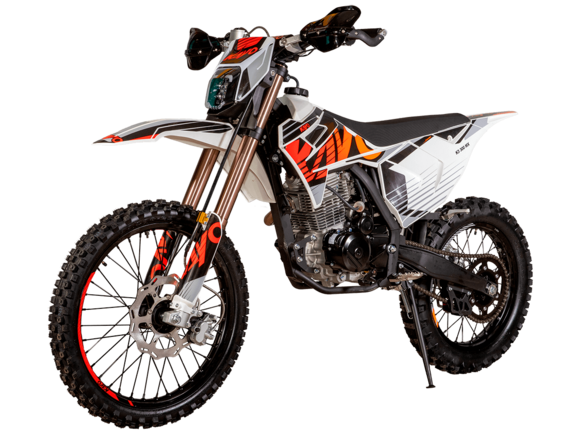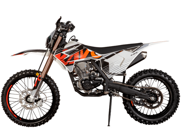 Мотоцикл KAYO K3 300 MX 21/18 2025 – эндуро мотоцикл, который пришёл, чтобы стать новым хитом среди среднеразмерных моделей!Мотоцикл оснащён одноцилиндровым 4-тактным двигателем ZONGSHEN PR300/ZS175FMM-5 объёмом 271,3 см³ с балансирным валом и воздушным типом охлаждения. Максимальная мощность в 21,75 л.с. достигается при 8500 об/мин, а максимальный крутящий момент 22 Нм при 6500 об/мин. Соотношение диаметра и хода поршня 75,0х61,4. Степень сжатия 9,29:1. Карбюратор NIBBI PE30 обеспечивает топливную экономность и бесперебойную работу в самых сложных заездах. На мотоцикле установлена 5-ступенчатая коробка передач и цепной привод. Запуск двигателя осуществляется с помочью электростартера или кикстартера. Объём топливного бака 10 литров.Спицованные колёса с алюминиевыми ободами имеют диаметр 21 дюйм спереди и 18 сзади. Для подвески спереди используется телескопическая вилка перевёрнутого типа длиной 830 мм, а сзади установлен моноамортизатор длиной 450 мм. Оба компонента регулируются. На мотоцикле установлены гидравлические дисковые тормоза с 2-поршневой системой спереди и однопоршневой сзади.Мотоцикл готов к самым суровым вызовам бездорожья. Удобное расположение фильтр-бокса позволяет легко обслуживать его после заездов. Руль оснащён алюминиевой защитой рук с высокими пластиковыми накладками. На мотоцикле используются ручки-«неломайки» с регулировкой положения рычага и короткоходная ручка газа.Габариты 2100х810х1180 мм, вес 109 кг. Клиренс 340 мм, колёсная база 1390 мм, высота по седлу 900 мм.