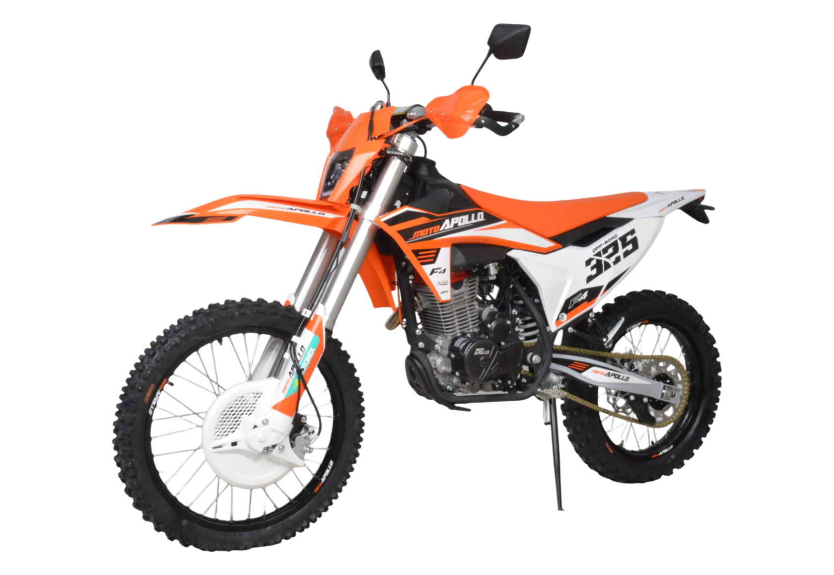 Moto Apollo F3 300 в новой, ещё более продвинутой версии — это мощный и технологичный кроссовый мотоцикл, созданный для уверенной езды по пересечённой местности. Несмотря на маркировку двигателя 176FMN, его реальный рабочий объём составляет 300 см³, а мощность достигает 27 лошадиных сил, что делает его одним из самых энерговооружённых в своём классе. Двигатель с воздушным охлаждением и цепным приводом ГРМ сочетает простоту конструкции с высокой надёжностью, а использование бензина АИ-95 обеспечивает стабильную работу и оптимальную отдачу.