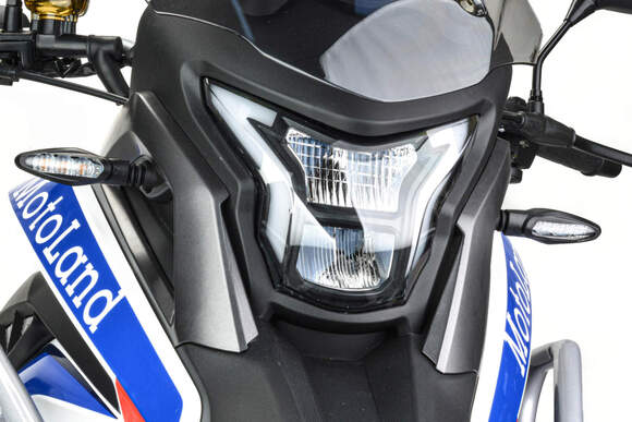 Motoland GS ENDURO является классическим турэндуро с укороченной колесной базой в размере 1330 мм. Он обладает вертикальным углом наклона вилки около 70 градусов и прямой посадкой, что делает его идеальным выбором как для начинающих райдеров, так и для опытных мото путешественников. Особенностью такой геометрии является легкость управления на низких скоростях. В сочетании с мощным двигателем ZS 172FMM-5 (PR250 с балансировкой), выдающим 21 лошадиную силу, мы получаем комфортный мотоцикл для городской езды и путешествий как по асфальту, так и по пересеченной местности.Мотоцикл Motoland GS ENDURO характеризуется своим ярким и узнаваемым дизайном, прочной рамой из Cro-mo труб, обладающей высокими прочностными характеристиками, а также современной подвеской с выносными регулировками компрессии и отскока. Он оснащен ободами из алюминиевого сплава, наличием электростартера, прямоточным выхлопом и LED оптикой с возможностью переключения между ближним и дальним светом. Двигатель ZS 172FMM-5 с балансирующим валом обеспечивает интуитивно понятную отдачу мощности и работает на воздушном охлаждении. Cro-mo рама обладает высокой прочностью, долговечностью и ремонтопригодностью.LED фара с двумя режимами работы обеспечивает яркое освещение в темное время суток, а влагозащищенная приборная панель обеспечивает надежность и защиту электроники.Литые алюминиевые колеса с размерами 2.5x17 110/80 - 3.5x17 130/80 значительно снижают неподрессоренную массу мотоцикла, обеспечивая великолепную работу подвески даже на неровных дорогах и комфортную поездку для райдера.Удобное мягкое сиденье, ветровое тонированное стекло, USB-зарядка и жидкокристаллическая цветная приборная панель с подсветкой - заставят радоваться комфорту и удобству.Мощные гидравлические 4-поршневые дисковые тормоза, а также резина, обеспечивают отличное качество разгона, торможения и устойчивость в поворотах как на асфальте, так и на сухих грунтовых дорогах. Они также обладают высокой износоустойчивостью.Защита картера двигателя и стальные звезды увеличивают надежность и срок службы мотоцикла. Багажник на заднем крыле и подножки для пассажира позволяют удобно перевозить груз и предоставляют дополнительные возможности для пассажира.
