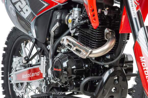 Motoland Sport 300 R (175FMM) – бюджетный короткобазный кроссовый мотоцикл с мощным двигателем 175FMM на воздушном охлаждении 300 cc мощностью 25 лс.Ключевыми особенностями мотоцикла являются его компактные габариты, стальная рама и маятник, алюмин. литые траверсы, ступицы и руль, современная подвеска с предустановленными настройками с завода, мощные тормоза, стальные колесные диски, наличие электростартера и кик стартера, прямоточный выхлоп, обвес из АБС пластика, LED оптика с возможностью переключения ближний\дальний.- Двигатель ZS 175FMM – 300 кубовый «тяговитый» двигатель с высокими показателями крутящего момента и мощностью 25 лс, на воздушном охлаждении.-карбюратор PЕ 30 обеспечивает бесперебойную работу двигателя в любом диапазоне температуры и высоты.- Стальная рама обеспечивает солидный запас прочности, ресурс и ремонтопригодность- Энергоемкая подвеска с заводскими настройками гарантирует уверенное преодоление неровностей дороги при торможении.