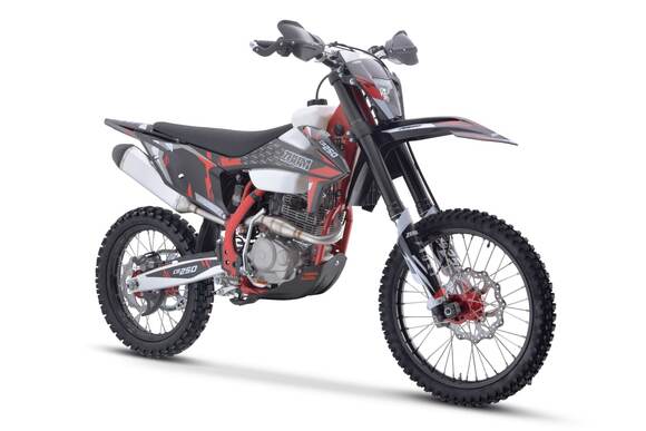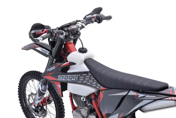 Комплектация Руль, усиленный алюминиевый, сплав 7075 Фара LED - 5 мощных светодиодов Рычаг КПП – CNC (фрезерованный) Счетчик моточасов (без тахометра) Звезда – передняя 14 / задняя 49 Цепь без сальниковая 520 Накладки на раму в районе подножек Выхлопная система с резонатором Power Bomb, изготовленная из нержавеющей, стали, укомплектованная алюминиевым глушителем типа FMF