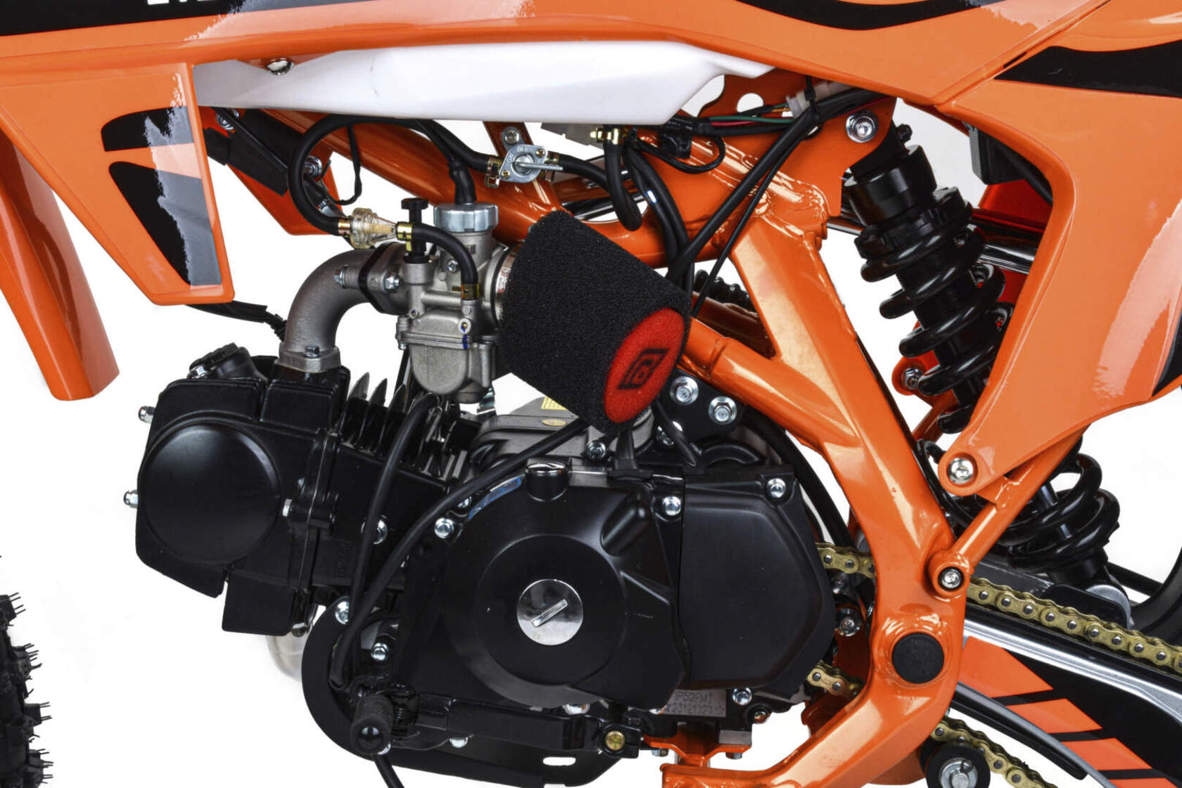 Хорошо чувствует себя на мягком и среднем грунте, разгоняется до 90 км/ч.Питбайк прост в управлении и не требует специального ухода, подойдёт как новичкам, так и любителям мотокросса.Комбинированный прочный пластик не ломается при сгибании.Передняя подвеска — телескопическая вилка перевёрнутого типа, которая отлично подходит для преодоления ям, и других неровностей. Задняя подвеска маятниковая с моноамортизатором.Питбайк оснащён: