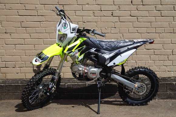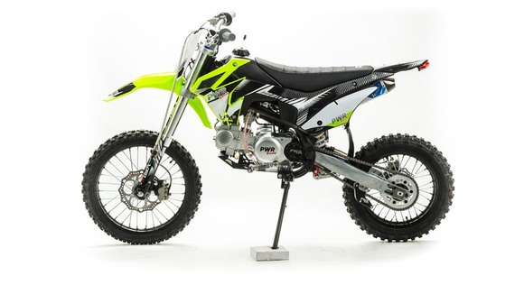 Питбайк PWR Racing FRZ 125 17/14 идеален для поездок по грунтовым дорогам и бездорожью. Хорошо чувствует себя на мягком и среднем грунте, разгоняется до 90 км/ч. Оснащён спортивными траверсами, весит всего 80 кг.Питбайк прост в управлении и не требует специального ухода, подойдёт как новичкам, так и любителям мотокросса.У питбайка отличный узнаваемый дизайн. Конструкция подчёркивает неуступчивый спортивный характер, который не остановится ни перед одним препятствием.Комбинированный прочный пластик не ломается при сгибании.Передняя подвеска — телескопическая вилка перевёрнутого типа, которая отлично подходит для преодоления ям, и других неровностей плохих дорог или их отсутствия. Задняя подвеска маятниковая, моноамортизатор с прогрессией. А так же оснащён складными рычагами сцепления и переднего тормоза.Мотоцикл оснащён карбюратором MIKUNI VM22 и одноцилиндровым четырёхтактным двигателем с воздушным охлаждением. Надёжный мотор 153FMI мощностью 8 л. с. и объемом 125 см³