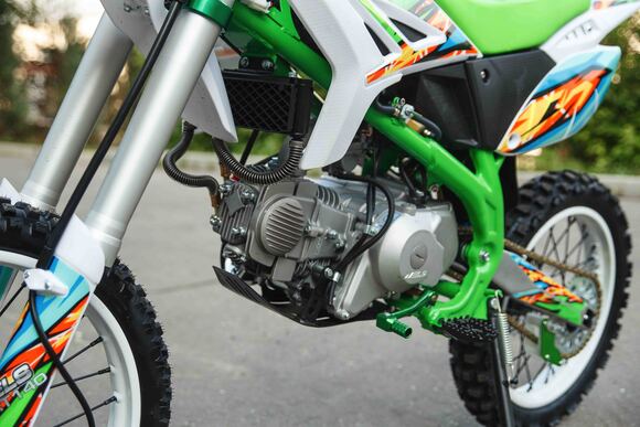 Современный, лёгкий 2Т питбайк на колёсах 10/10 Идеальный питбайк для юного райдера, что бы начать свой путь в мире мотокросса ! Геометрия питбайка и посадка в точности повторяет "взрослые" кроссовые и эндуро мотоциклы. Питбайк оснащён усиленой рамой, двупружинным стальным сцеплением с увеличенным сроком службы, алюминиевым ручным стартером, чекой аварийной остановки. В комплект питбайка входят дополнительные тренировочне колёса для первых "мото-шагов" юного райдера, которые помогают научиться держать баланс на питбайке.
