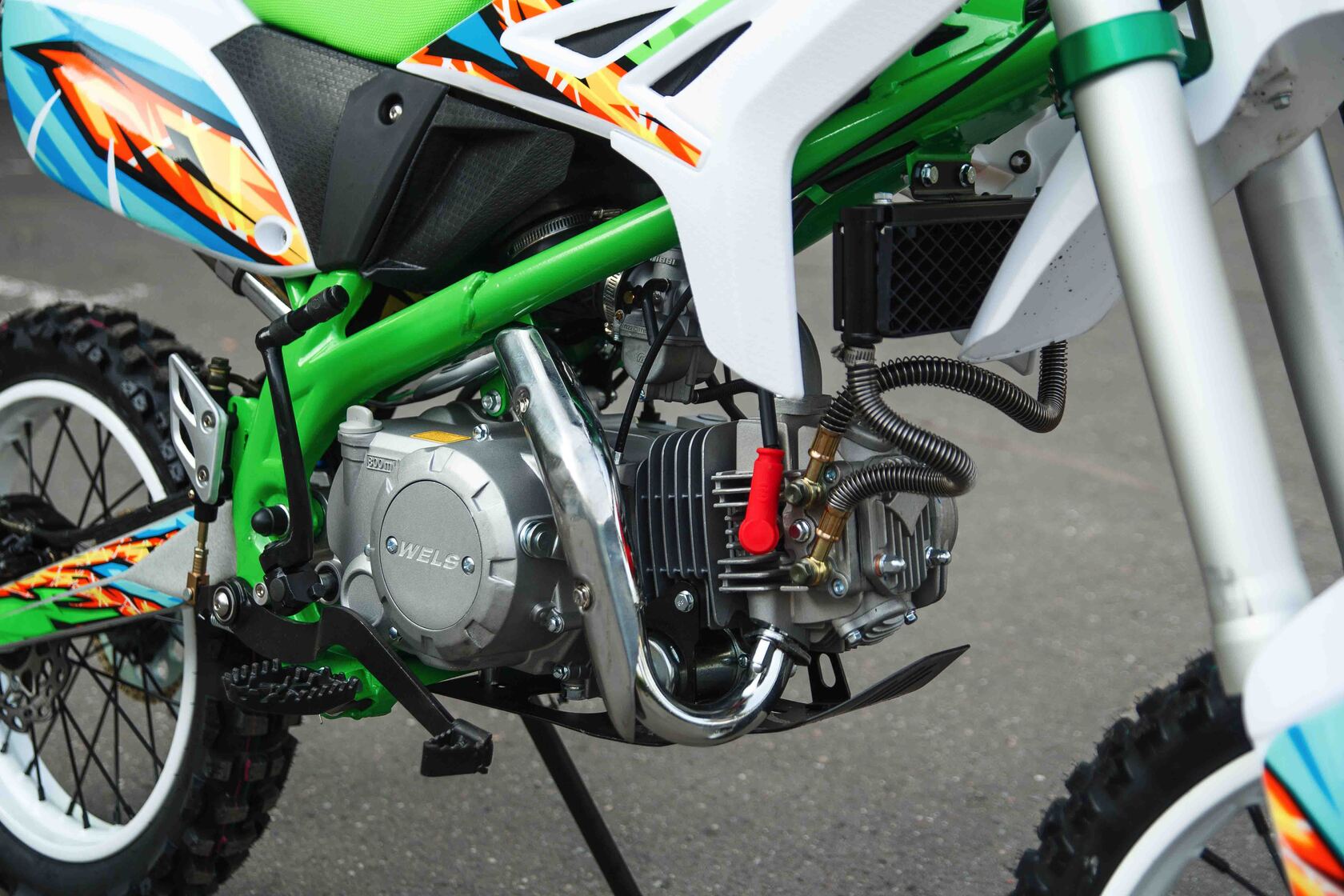 Новинка 2020 года от компании WELS.Новая модель построена на новой раме, питбайк в базовой комплектации включает в себя все необходимое, фара, моточасы, буксаторы, 428 цепь, внешний вид подчеркивает яркая графика.Пит-байк оснащен электростартером, качественным карбюратором KEIHIN, работающим в паре с фильтрбоксом, и надежным двигателем YX с электростартером. Из-за легкого веса питбайк очень прост в эксплуатации.Питбайк Wels 140сс предназачен для активных покатушек как в загородных условиях, так и по подготовленным трассам. Легкий вес мотика вкупе с резвым двигателем, способны для достижения любых результатов и в учебной езде и в продвинутом отношении, с максималкой до 100 км/ч!Техническая начинка пита от Wels как всегда на высоте; вилка-перевертыш, супер тормоза с армированными шлангами, злая off-road резина. С питбайком Wels вы подружитесь навсегда! Поставляется без ПТС, как спортинвертарь - не для дорог общего пользования.Отлично подойдёт как новичкам, так и опытным райдерамУ нас Вы можете купить этот мотоцикл с бесплатной доставкой по РФ и гарантией до года. Также его можно приобрести в рассрочку или в кредит.