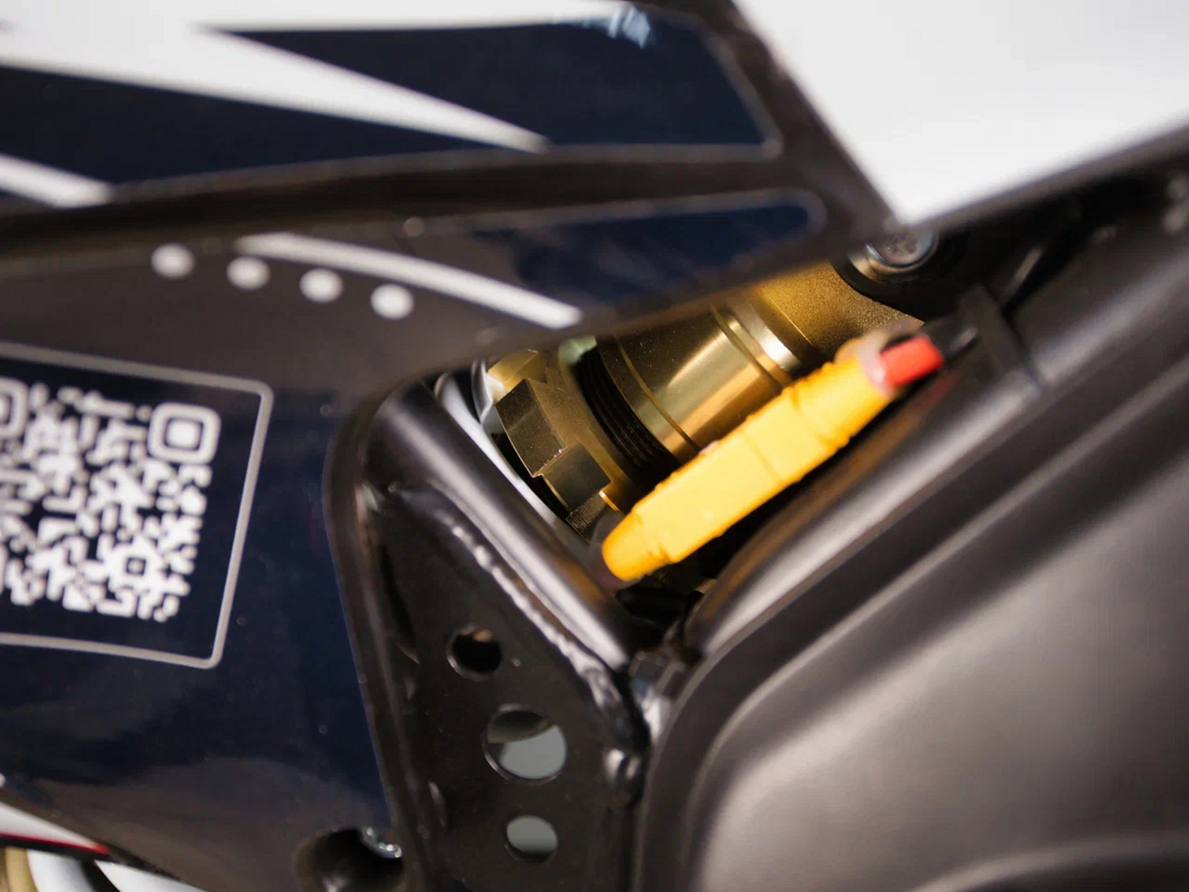 Подвеска передняя Подвеска начального уровня рассчитана на людей весом в 40-50кг. Можно сделать ее жесткой и использовать с весом пилота 65-75кг. Спереди установлена телескопическая вилка, сзади - моноамортизатор.