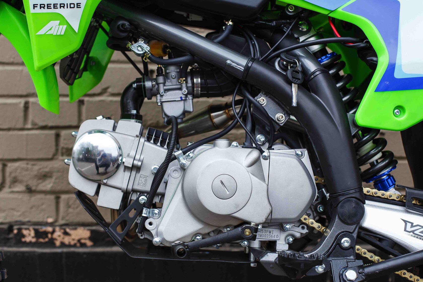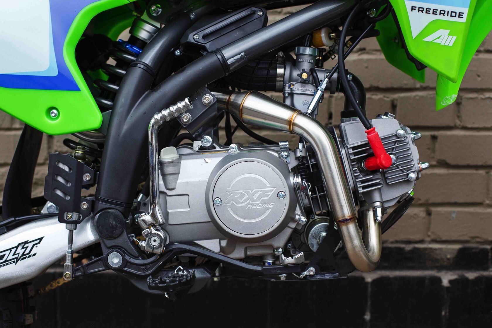 Представляем Вам обновленный RXF Freeride 125 LE 19/16. Модель обзавелась фарой, электростартером и также получила обновленный дизайн графики.RXF Freeride 140 L – по праву считается отличным выбором из линейки Freeride. Мотор YX 125 с электростартером достаточно мощный и тяговитый, чтобы не дать скучать опытным райдерам, но в тоже время достаточно покладистый и безопасный для новичков. На обновленном Freeride теперь есть фара головного света, которая идет в комплекте с питбайком.