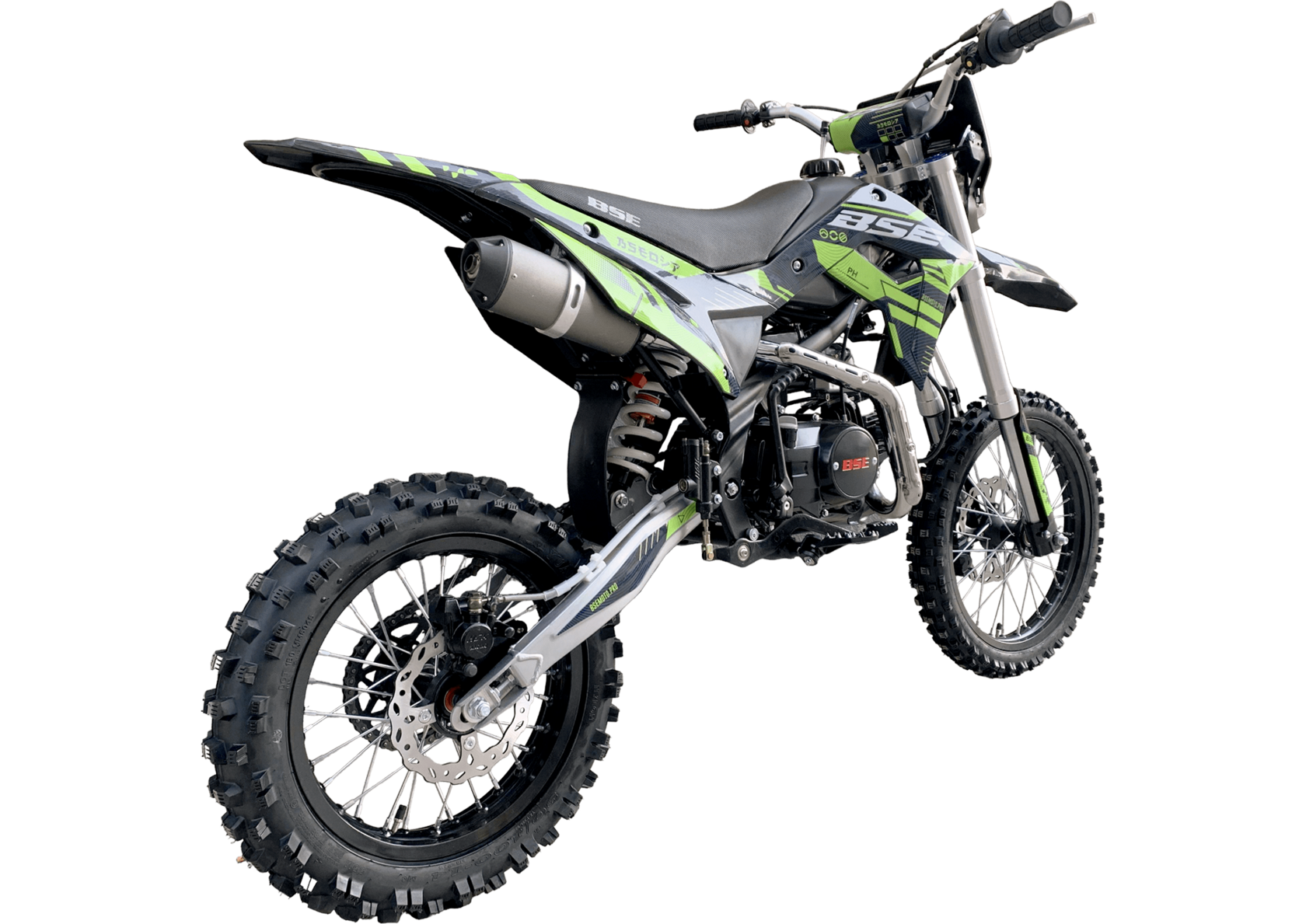 Питбайк BSE PH125 на колесах 17/14 дюймов – один из самых популярных, надежных и продаваемых питбайков 125 куб см среди китайских производителей! Этот классический питбайк объёмом 125 см3 обладает рядом модификаций и полезных усовершенствований, которые дополняют его функционал и отличают от конкурентов. PH125 оснащен колесами классическим для питбайка размером колес 17/14. Основа PH125 - рама из хромомолибденовой стали повышенной жесткости с литыми усилителями - фирменный знак качества завода BOSUER! Cиловая установка питбайка – надежный, тяговитый и мощный 4-тактный двигатель Zonghshen 125 куб см с воздушным охлаждением и мощностью 10 лс. Питает мотор карбюратор Jingke PZ 26. Питбайк оснащен 4-ступенчатой механической трансмиссией. Запуск мотора осуществляется при помощи электростартера или кик-стартера. Подвески с большими ходами: передняя - телескопическая вилка перевёрнуто типа, задняя- моноамортизатор. "Злая" резина, Мощная тормозная система HSK Racing, японские колесные подшипники NTN, усиленная цепь 428 Gold, защита мотора - питбайк полностью укомплектован всем необходимым для покатушек и гонок.