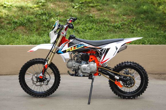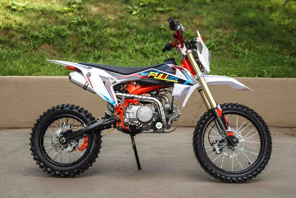 Представляем Вашему вниманию питбайк от молодого российского бренда Full Crew. Модель получила название FC125e 17/14. В ней собраны все ключевые моменты для покорения сердца питбайкера. Крепкая стальная рама, дисковые гидравлические тормоза, надежный и проверенный временем двигатель YX 125 с механической четырехступенчатой коробкой передач и фара. А самый огромный плюс – это демократичная цена и наличие электростартера на питбайке Full Crew FC125 17/14.