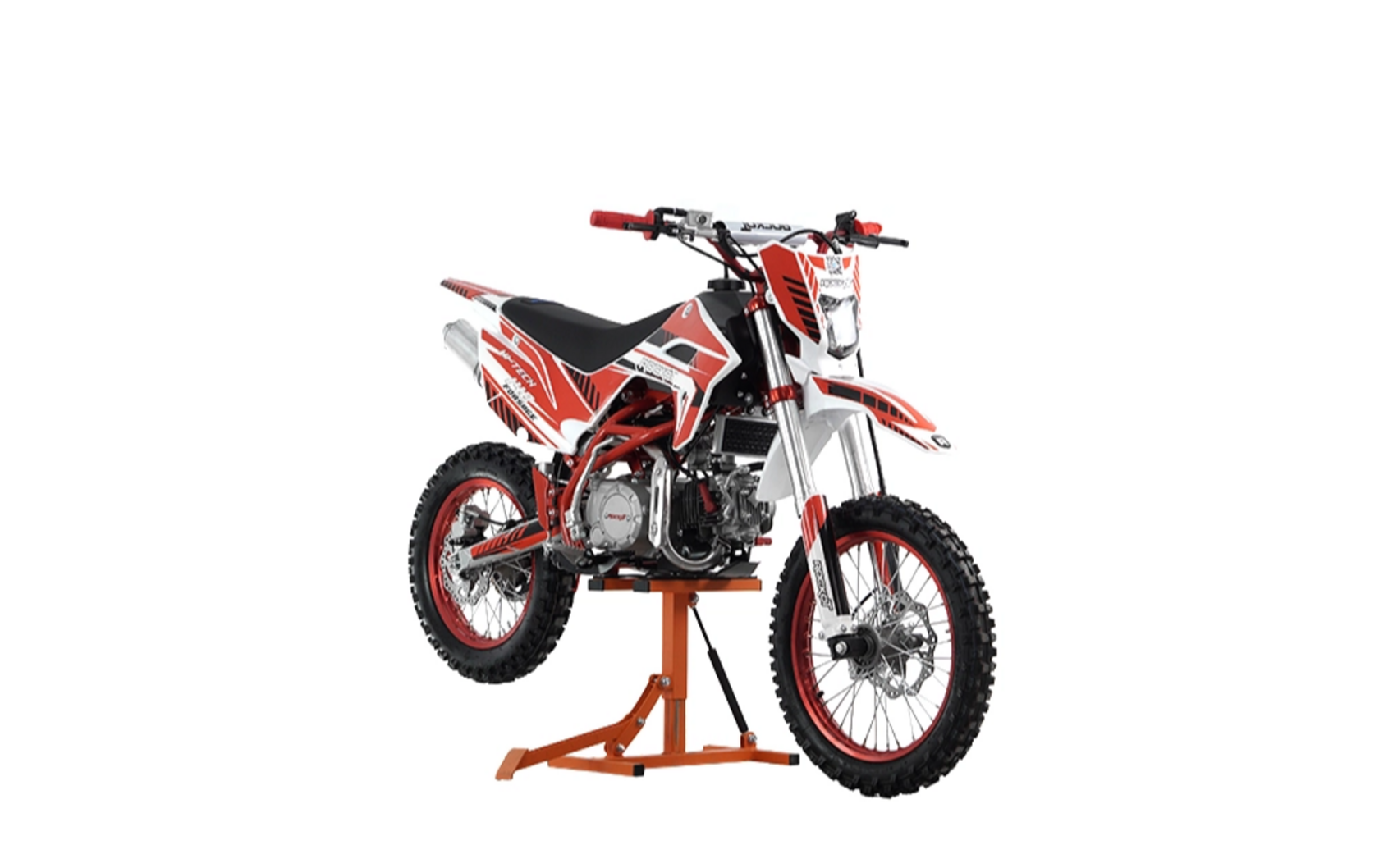 ROCKOT HI-TECH 140 Forsage 2.0 - питбайк со спортивным нравом. Двигатель объемом 140 кубических сантиметров, превосходно проявляет себя как в повседневной езде по лесу, так и в спортивных состязаниях по мини мотокроссу. С управлением питбайком ROCKOT HI-TECH 140 Forsage справятся и взрослые и дети, ведь его вес всего 75 килограмм. Высота по седлу у данной модели - 850 мм, что будет комфортна для райдеров ростом от 150 см.Рулевое управлениеВ алюминиевых траверсах закреплен высокий руль, на котором установлены короткоходная ручка газа, откидные, фрезерованные рычаги сцепления и тормоза, счетчик моточасов и кнопки: старт, стоп. Тормозная системаПитбайк оснащен полностью гидравлической тормозной системой. Спереди установлен двухпоршневой тормозной суппорт, сзади - однопоршневой. Гидравлическая машинка заднего тормоза оборудована металлической защитой, которая обеспечит ее сохранность при боковых ударах. Тормозные диски увеличенного диаметра: передний тормозной диск - 220 мм, задний - 190 мм. Перфорация тормозных дисков обеспечивает их постоянное охлаждение во время езды. Данная тормозная система способна быстро останавливать питбайк в любых условиях, даже с высокой скорости.