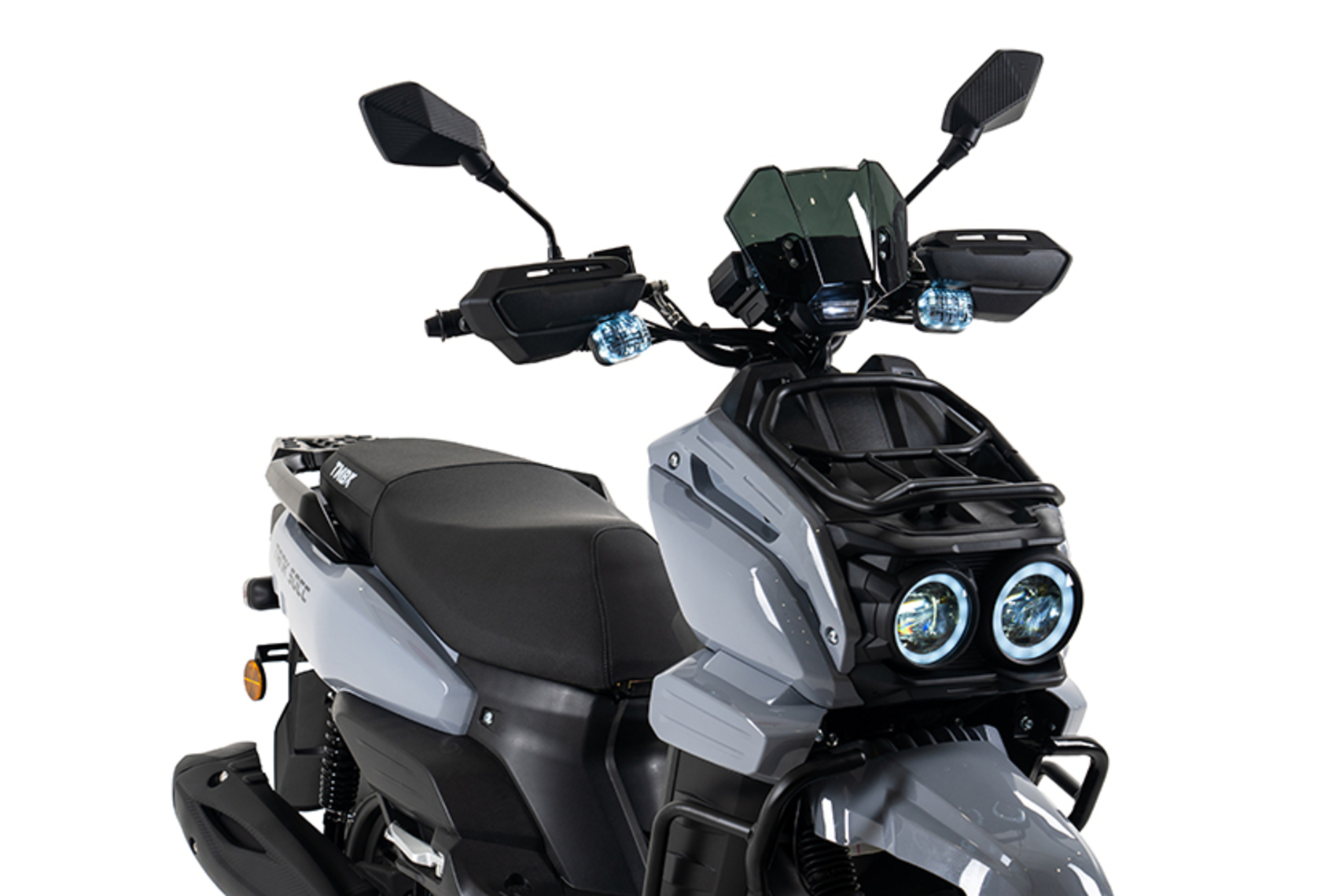 TMBK TANK — это не просто скутер, а настоящий городской вездеход, готовый к любым приключениям. Он спроектирован для того, чтобы с легкостью справляться с колдобинами и ухабами города, а также для поездок за его пределы, где нет асфальта, но есть желание двигаться вперед.TANK — ваш идеальный спутник, который будет незаменим как в повседневных городских поездках, так и в более длинных путешествиях. Мощный, надежный и с отличной грузоподъемностью, он готов выполнить любую задачу — от утренней поездки за хлебом до путешествия по бездорожью и даже кругосветного турне.Мощность и экономичностьСкутер TMBK TANK оснащен мощным, но экономичным двигателем, который обеспечивает отличную динамику в городских условиях и уверенность на сельских дорогах. Благодаря низкой степени сжатия мотора, ваши поездки будут не только быстрыми, но и экономными — минимальный расход топлива позволяет не думать о заправках, наслаждаясь каждой минутой дороги. Это идеальное сочетание мощности и экономии!ГрузоподъемностьTMBK TANK — это скутер, который точно оценит каждый, кто часто перевозил грузы. К стандартному вместительному отсеку под сиденьем добавляются дополнительные возможности: площадка для кофра и небольшой багажник над фарой. Площадка расширяет грузовой потенциал, а багажник позволяет быстро зафиксировать мелкие вещи, не перекрывая важные световые приборы. Все продумано до мелочей, чтобы обеспечить вам максимальный комфорт и удобство при перевозке всего необходимого.Защита и комфортTMBK TANK не только справляется с любыми дорогами, но и защищает вас в любых условиях. Дополнительные дуги безопасности защищают пластиковые элементы при падении, а защита рук спасет вас от грязи, веток и камней на бездорожье, гарантируя комфорт в любую погоду — будь то дождь, ветер или снег. Ваши руки всегда будут защищены, даже в самых сложных условиях.ДизайнУникальный утилитарный дизайн не только выделяет TMBK TANK на фоне других скутеров, но и способствует повышенной проходимости. TANK с легкостью преодолевает любые препятствия, будь то неровности на дорогах, грязь или песок. Эта модель скутера идеально подходит для поездок по всем видам дорог и станет вашим лучшим другом как в городе, так и за его пределами.TMBK TANK — ваш верный спутник в любых путешествиях, который обеспечит удобство, комфорт и уверенность на каждом километре дороги. Готовы к новым приключениям? Тогда TMBK TANK ждет вас!