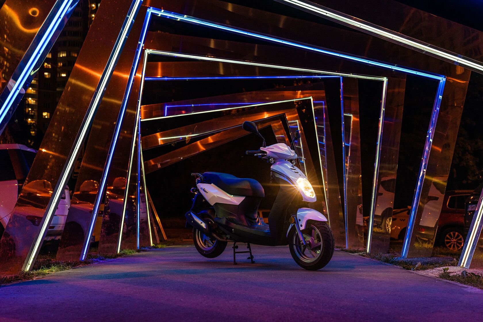 Скутер VENTO CITY 49сс (150) LED фары, сигнализация Черно-белый pitbikemarket.ru