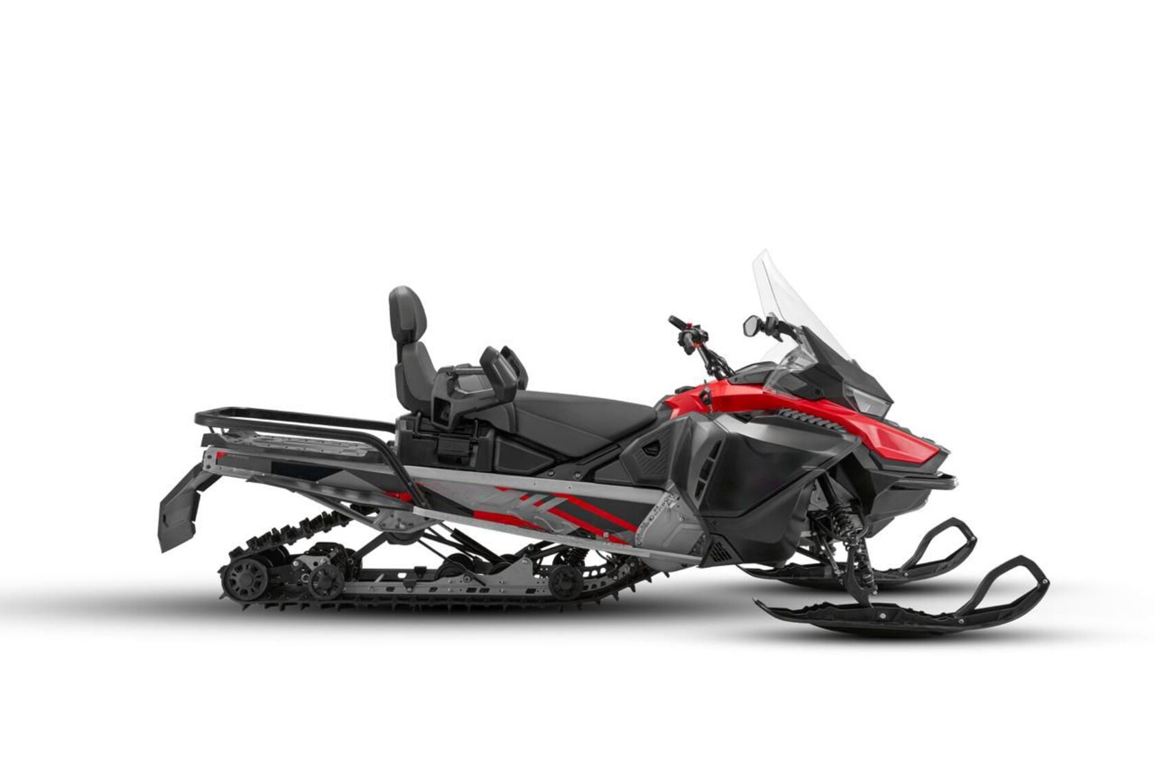 Снегоход Таврида — это техника, созданная для тех, кто не боится зимы и предпочитает свободу движения там, где дороги заканчиваются. В его основе — современный трёхцилиндровый рядный двигатель объёмом почти 900 кубических сантиметров. Это четырёхтактный мотор с двумя верхними распредвалами (DOHC) и жидкостным охлаждением, что гарантирует стабильную работу в самых суровых условиях. Снегоход развивает до 97 лошадиных сил и выдаёт внушительные 93 Н·м крутящего момента на пике мощности. Этой силы хватает не только для уверенного разгона по укатанной трассе, но и для того, чтобы пробиваться сквозь глубокий снег.Система питания — современный электронный впрыск топлива (EFI), благодаря которому двигатель запускается легко, работает ровно и экономично расходует топливо. Для запуска используется электростартер, что делает эксплуатацию ещё комфортнее. Рекомендуемое топливо — привычный бензин АИ-92 или АИ-95.В движение снегоход приводит надёжный вариатор CVT, который сочетает простоту управления с эффективной передачей мощности. Конструкция предусматривает несколько режимов — пониженный, повышенный, нейтраль, а также электронный реверс для движения назад. Такое решение позволяет одинаково уверенно чувствовать себя и при медленном маневрировании, и на высоких скоростях.Ходовая часть снегохода продумана до мелочей. Спереди установлена независимая подвеска с А-образными рычагами и стабилизатором поперечной устойчивости. Пружины в сочетании с масляными амортизаторами обеспечивают мягкий ход, сглаживая неровности и добавляя уверенности в управлении. Сзади используется склизовая подвеска с ограничителем хода, что позволяет эффективно распределять нагрузку и сохранять устойчивость даже при перевозке груза.Тормозная система у «Тавриды» также внушает доверие: дисковый гидравлический тормоз с двухпоршневым суппортом обеспечивает надёжное замедление в любых условиях, будь то ледяная корка или рыхлый снег.Снегоход впечатляет и своими скоростными характеристиками: максимальная скорость достигает 172 км/ч, что делает его отличным выбором не только для утилитарных задач, но и для любителей адреналина. При этом высокая тяга на низких оборотах позволяет уверенно двигаться даже по тяжёлой целине.Конструкция шасси также подчеркивает универсальность модели. Длинные лыжи (1070 мм) и гусеница шириной почти полметра создают оптимальное пятно контакта, а регулируемая ширина колеи позволяет подстраивать поведение снегохода под стиль езды. Высота грунтозацепа в 38 мм даёт отличное сцепление на рыхлом снегу.Несмотря на внушительные размеры (3400 × 1170 × 1500 мм), снегоход остаётся достаточно удобным в управлении. Высота седла подобрана так, чтобы обеспечивать комфорт при длительных поездках: до сиденья всего 978 мм, а значит посадка остаётся устойчивой и естественной. Сухой вес техники составляет 315 кг, а грузоподъёмность достигает 238 кг — этого достаточно, чтобы взять с собой всё необходимое снаряжение или пассажира. Крупный топливный бак объёмом 42 литра позволяет совершать длительные путешествия без частых дозаправок.Снегоход Таврида — это мощь и надёжность, упакованные в современный дизайн и продуманную конструкцию. Он одинаково хорошо подходит для активного отдыха и серьёзной работы, уверенно чувствуя себя и на трассе, и в условиях настоящег